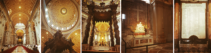 La basilica di San Pietro è uno dei più grandi edifici del mondo: lunga ben 218 metri e alta fino alla cupola 133,30 metri, la superficie totale è di circa 23 000 metri quadrati e può contenere 60.000 fedeli.