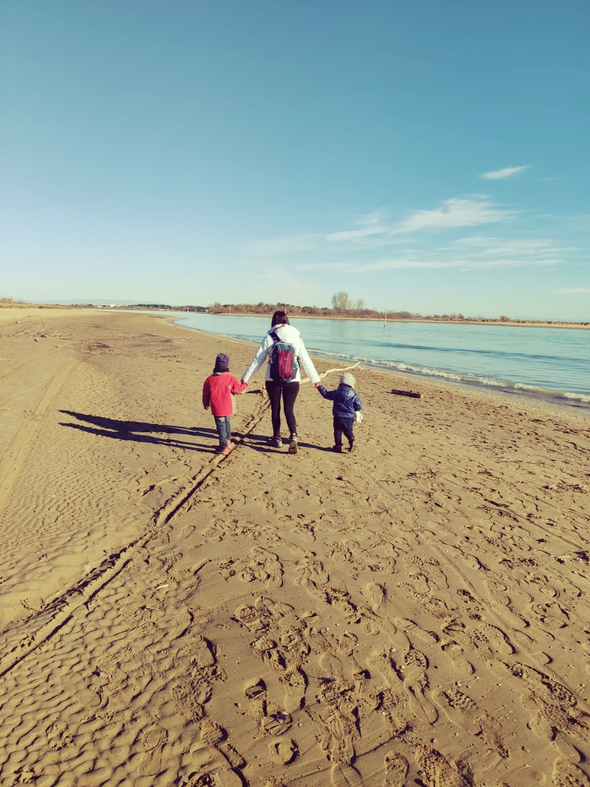 Raggiunta la spiaggia, la vista è spettacolare, ci lasciamo la pineta alle spalle per proseguire lungo il mare, in lontananza il porto. Nonostante il breve tratto facciamo fatica a raggiungere la meta, i bambini li abbiamo persi tra la sabbia, conchiglie e bastoncini di legno.