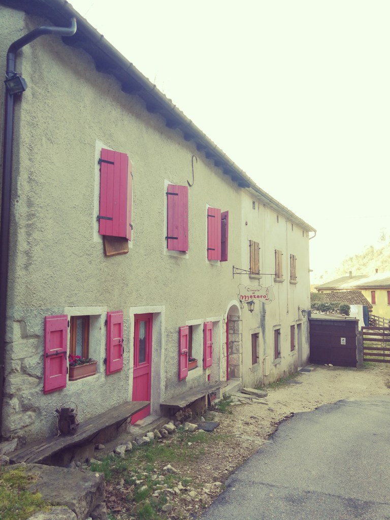 Ad un certo punto si incrocia nuovamente la strada asfaltata che va seguita per un breve tratto fino alla Baita alle Grotte. Anche qui ci sono dei tavoli con panche in esterno.. Per proseguire potete scegliere di percorrere la strada asfaltata fino al parcheggio oppure rientrare nel bosco seguendo i cartelli posti sul lato opposto della strada rispetto alla Baita.