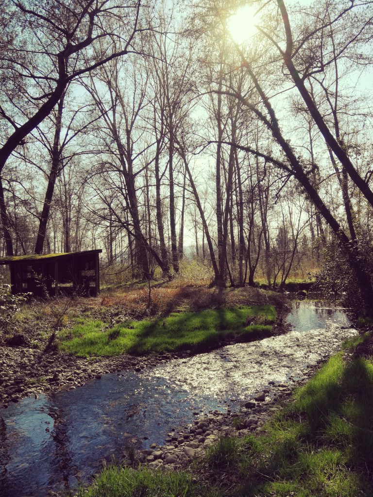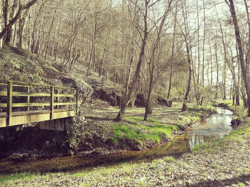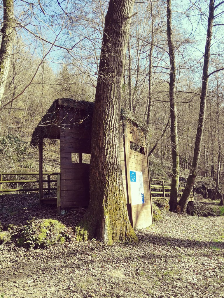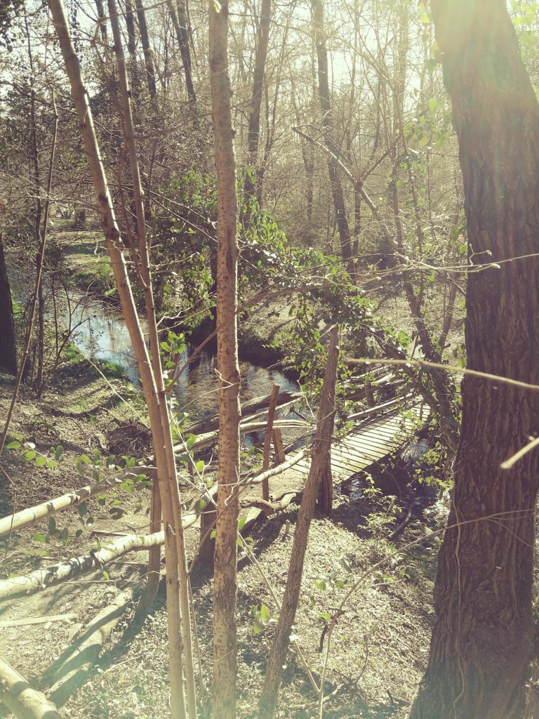 Breve e ripida discesa lungo il sentierino e raggiungiamo la meravigliosa area golenale, tra il fitto e fresco bosco, dove seguiamo il sentiero verso sinistra. Attraversiamo con diversi ponticelli, i torrenti di risorgiva, per giungere ad una postazione per il birdwatching.