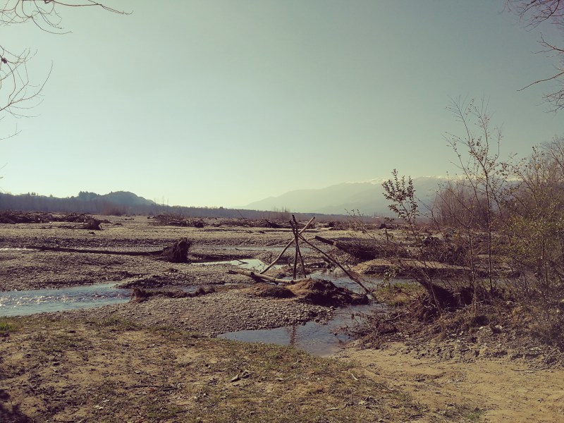Ci sono grotte e passaggi tra i conglomerati scavati dalle piene del fiume, precari ponticelli e scalette sugli isolotti rocciosi, boschetti di canne di bambù e naturalmente la lunare vista sulle sassaie del greto del fiume con sullo sfondo il monte Grappa.
