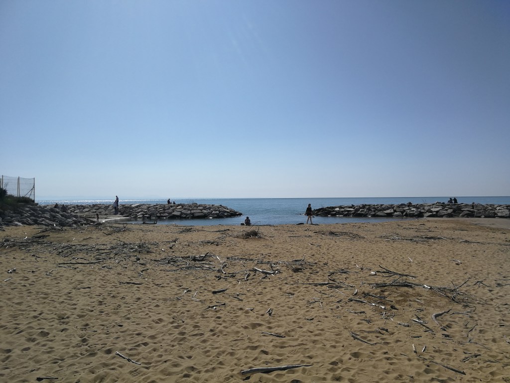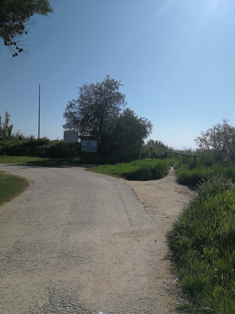 Al suo termine si trova una piccola laguna e le ultime palazzine del paese. Si prosegue lungo la strada asfaltata verso l’interno, a fianco delle palazzine, per qualche centinaio di metri fino ad un cancello con passaggio pedonale che permette di accedere ad un lungo viale attorniato da pini marittimi.