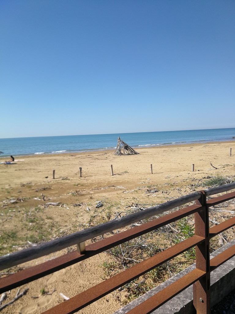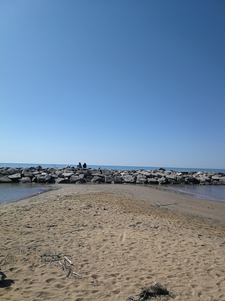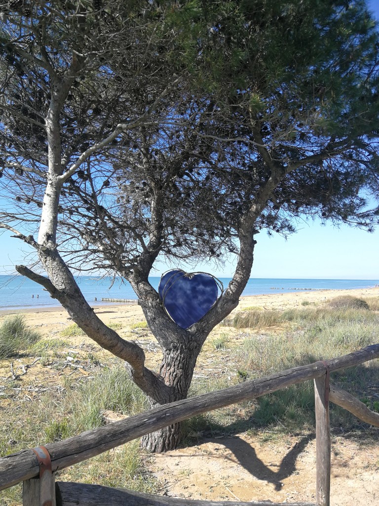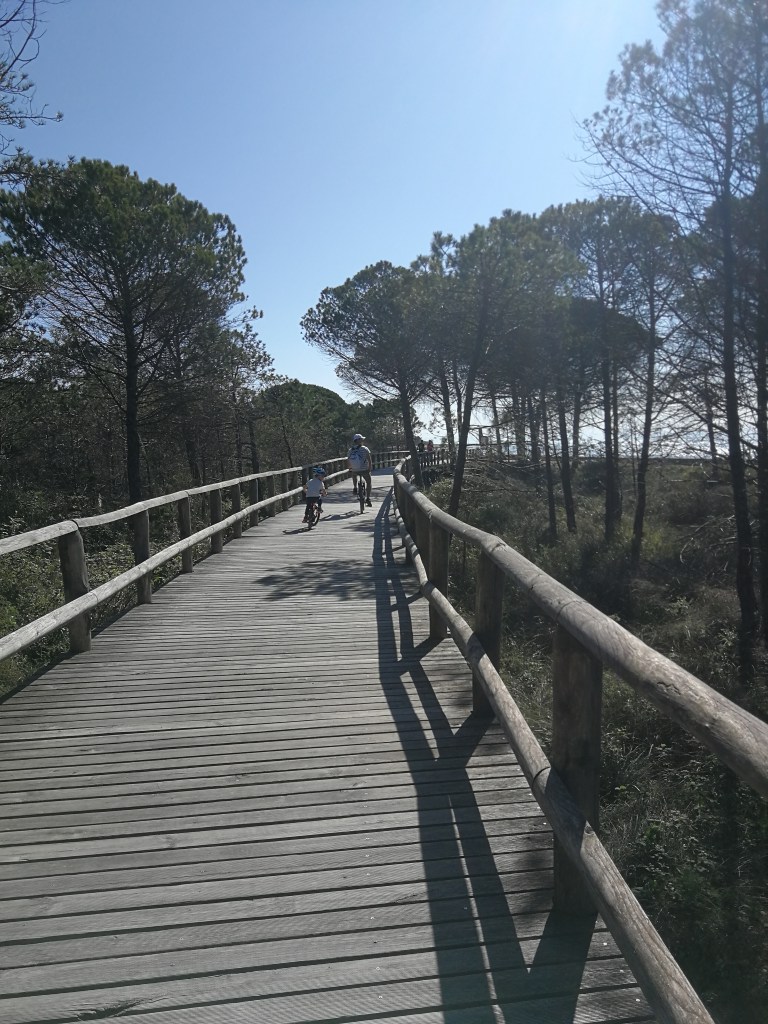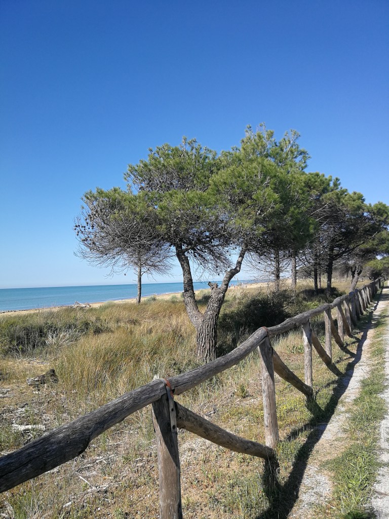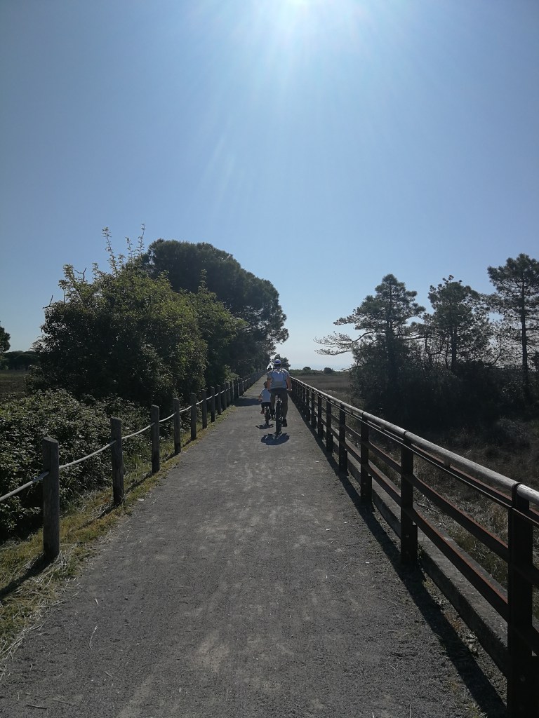Raggiunto piazzale Zenit, a pochi metri dal mare al termine della lunga strada che porta a Bibione, lasciamo l’auto e con le nostre biciclette ci si avvia in direzione est lungo il percorso pedonale che costeggia la spiaggia.