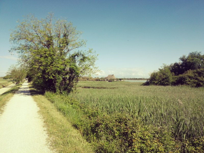Dopo circa 2 km, all’altezza dell’azienda turistico-venatoria Falconera, il percorso prosegue verso sinistra lasciandosi alle spalle il fiume Nicesolo e inizia a costeggiare il canale Saetta. Prima di proseguire, vale la pena fermarsi e depositare la bicicletta per percorrere a piedi il sentiero che porta, in direzione del fiume Nicesolo, all’isola dei pescatori.