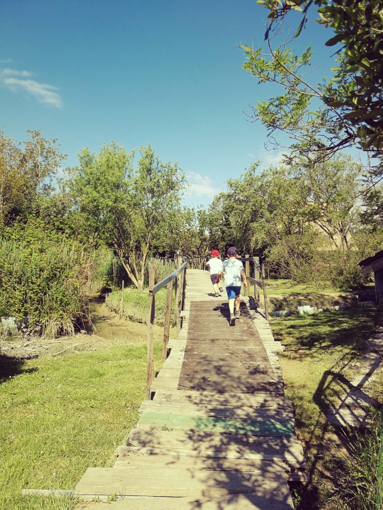 Un pontiletto di legno collega il sentiero a un primo gruppo di casoni, tra i quali anche quello caratteristico a pianta circolare detto “Al Cason dea Medusa”. Un secondo pontile conduce alla parte più interna dell’isola dove sono situati gli altri dodici casoni.
