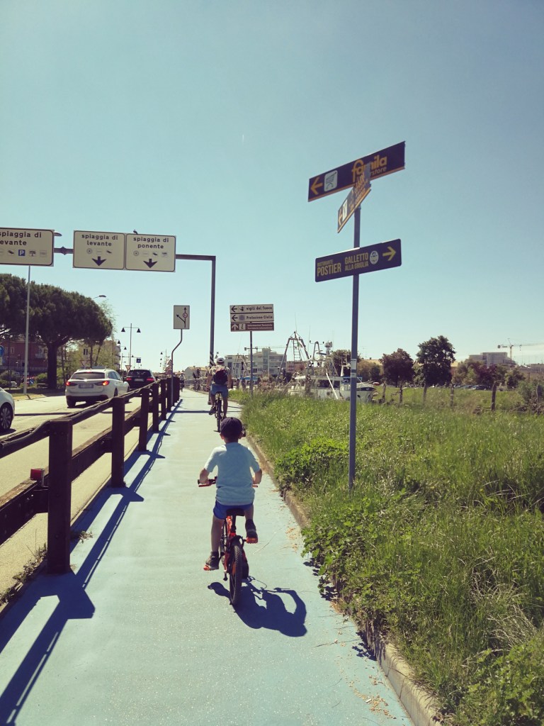 Ed eccoci, di nuovo all’avventura tra la natura selvaggia. Oggi sempre con le nostre biciclette percorriamo la ciclabile Caorle-Falconera. Un punto di partenza vero e proprio non c’è, un pò dove si è più comodi a parcheggiare, noi abbiamo preferito lasciare l’automobile presso dei parcheggi gratuiti al termine del lungomare Trieste, comodo per stare in spiaggia libera con i bambini dopo il giro ad anello in bicicletta.