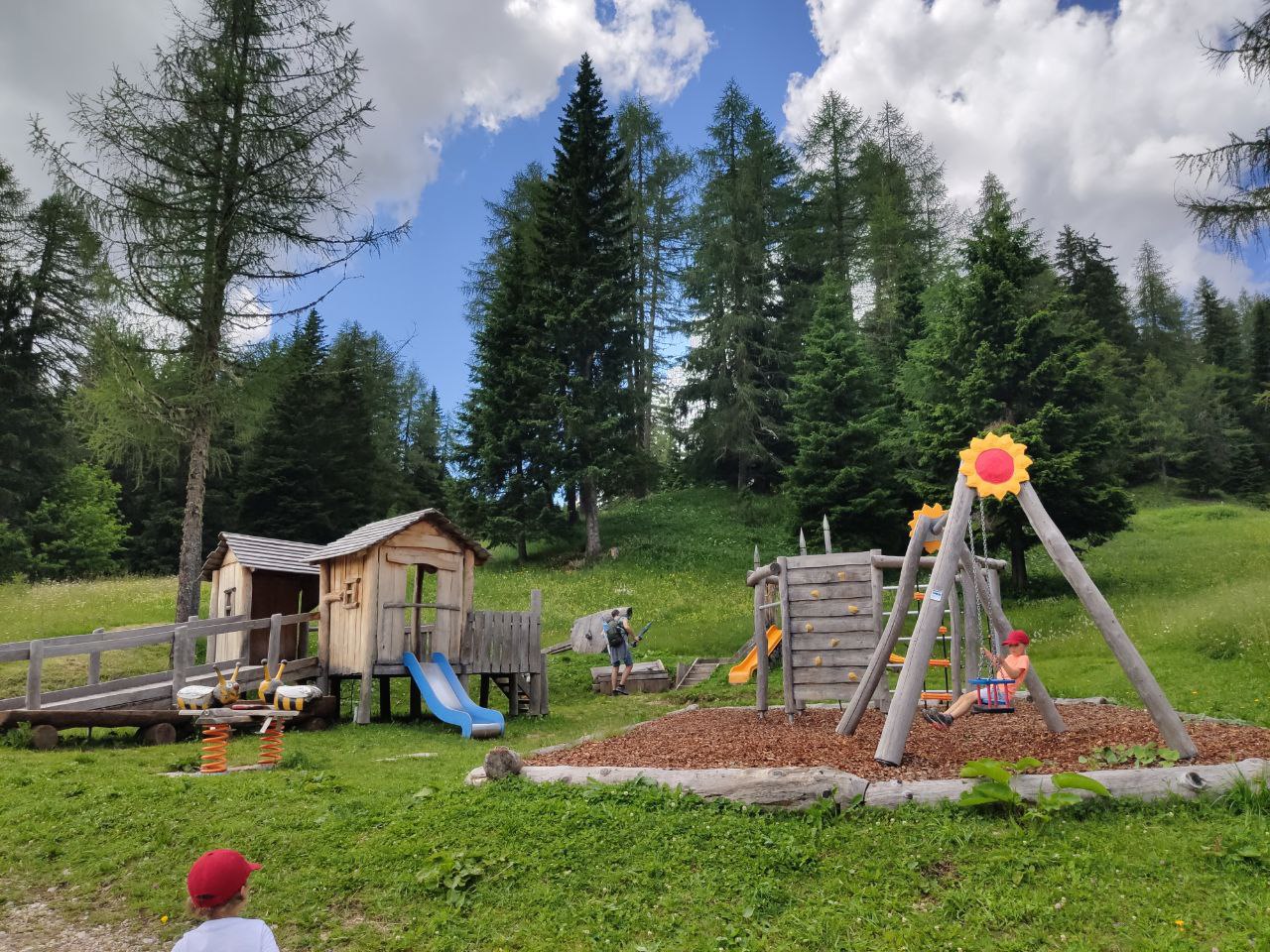 Tra freschi prati fioriti scorgiamo Il Rifugio, finalmente arrivati, i bambini ancora pieni di energia si tuffano in un bellissimo parco giochi e poi non può mancare una gustosa fetta di dolce per recuperare qualche energia e conquistare l’ultimo tratto in dolce salita che ci porta al parcheggio.