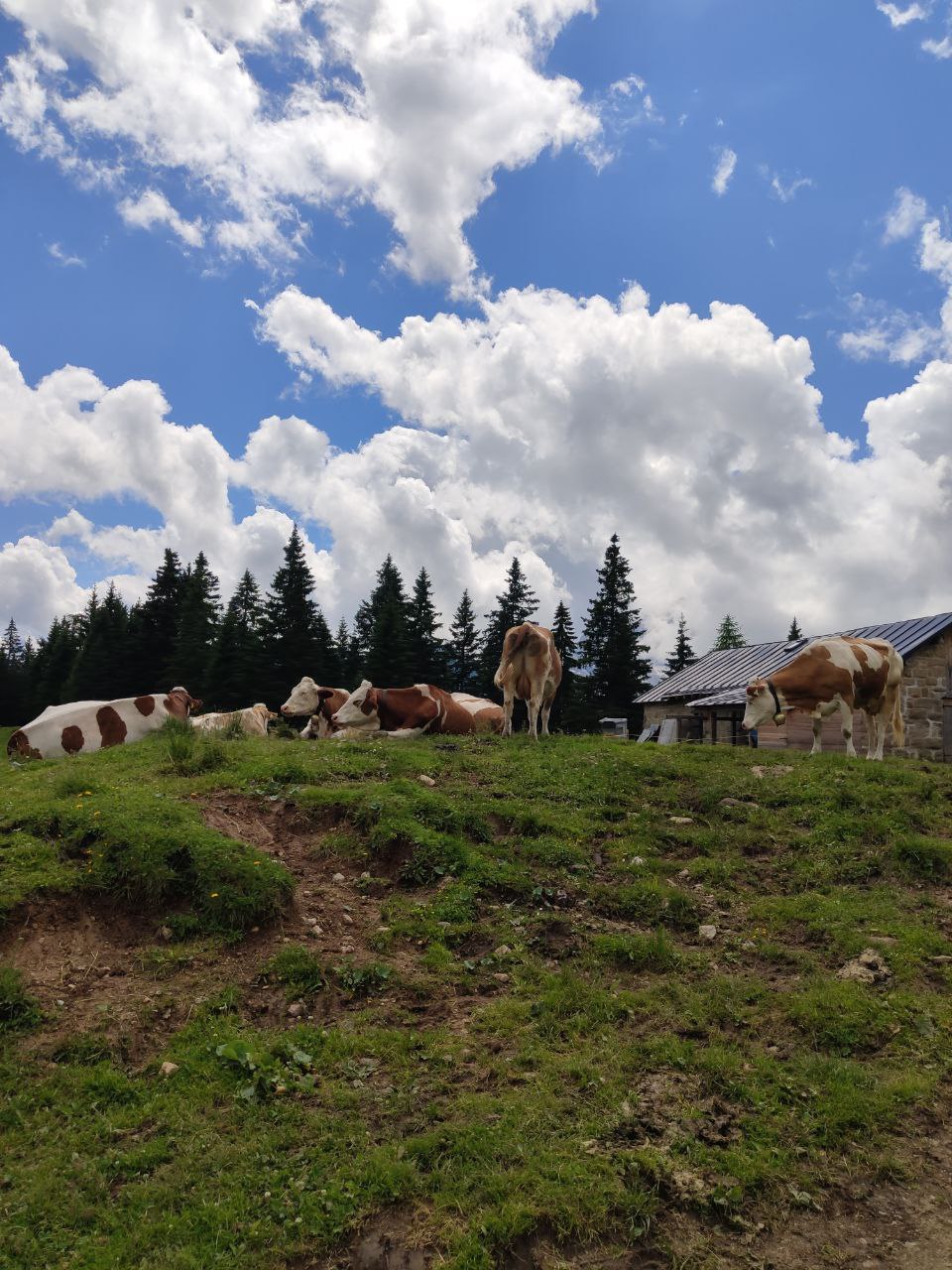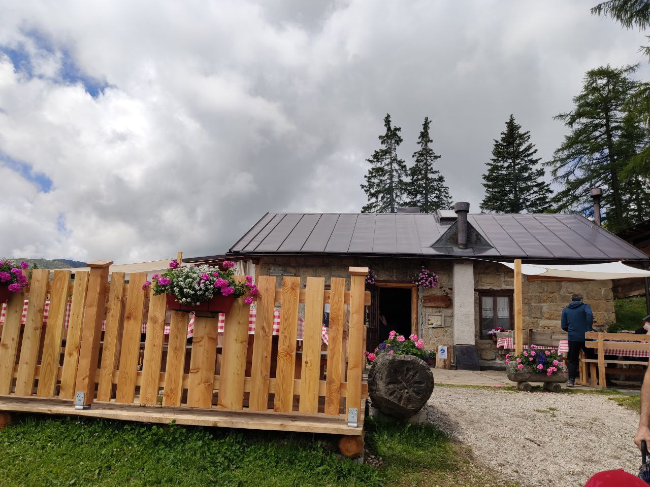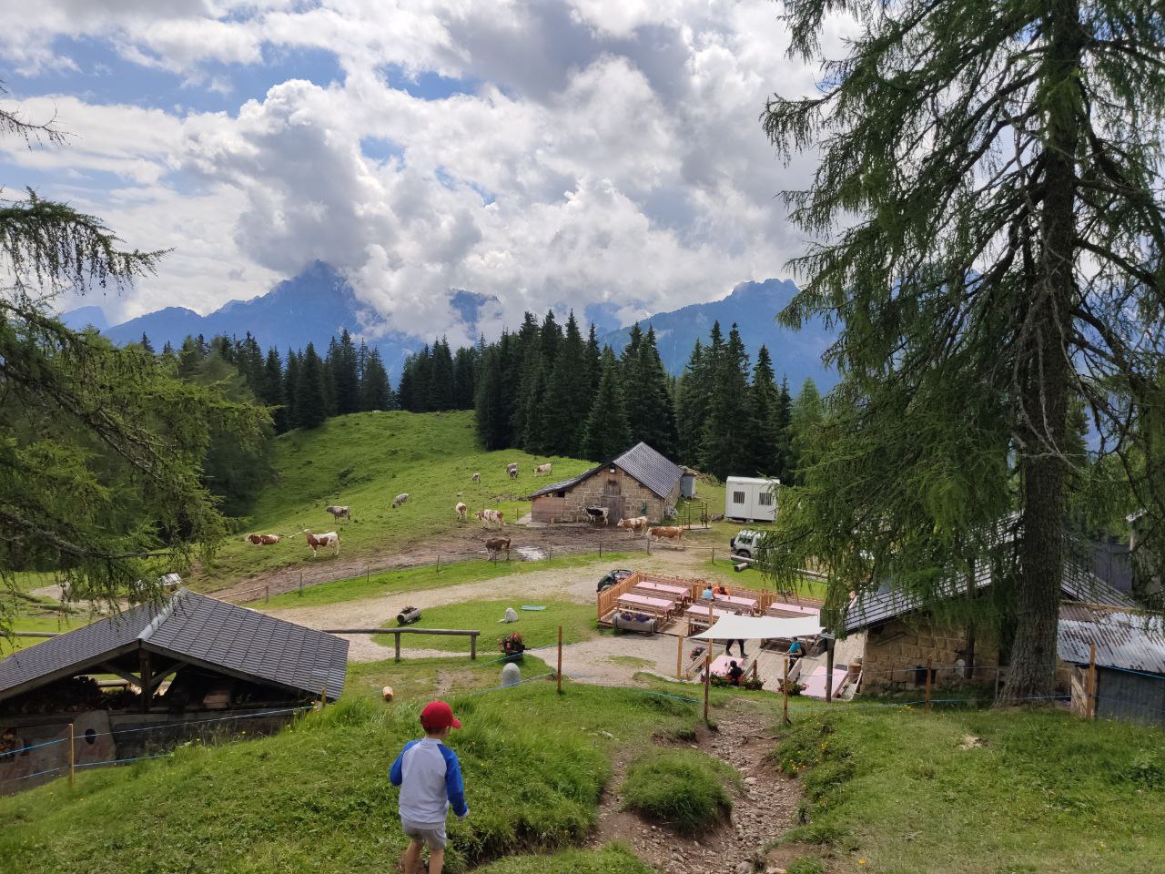 Gli occhi non possono non cadere ancora sui masi della Valfredda, ora piccoli piccoli; ancora pochi metri e raggiungiamo Forcella Marmoi (m.1988), punto più alto della nostra escursione. Ora è tutto in discesa (però poi al ritorno sarà da affrontare in salita! sempre se non proseguite per il Rifugio Flora Alpina come abbiamo fatto noi e completare un giro ad anello). In circa 20 minuti si raggiunge la nostra prima meta Malga ai Lach (m.1815), fate attenzione alcuni tratti sono ripidi per i bambini, (se non fanno come i nostri che saltellavano come stambecchi in fuga senza riuscire a fermarsi). Vicino alla malga diverse zone dove sedersi e consumare anche al sacco. Il menù della malga non è molto variegato ma è possibile gustare panini e carne alla griglia. Le famiglie apprezzeranno gli animali della malga (mucche, cavalli) che pascolano nei prati.