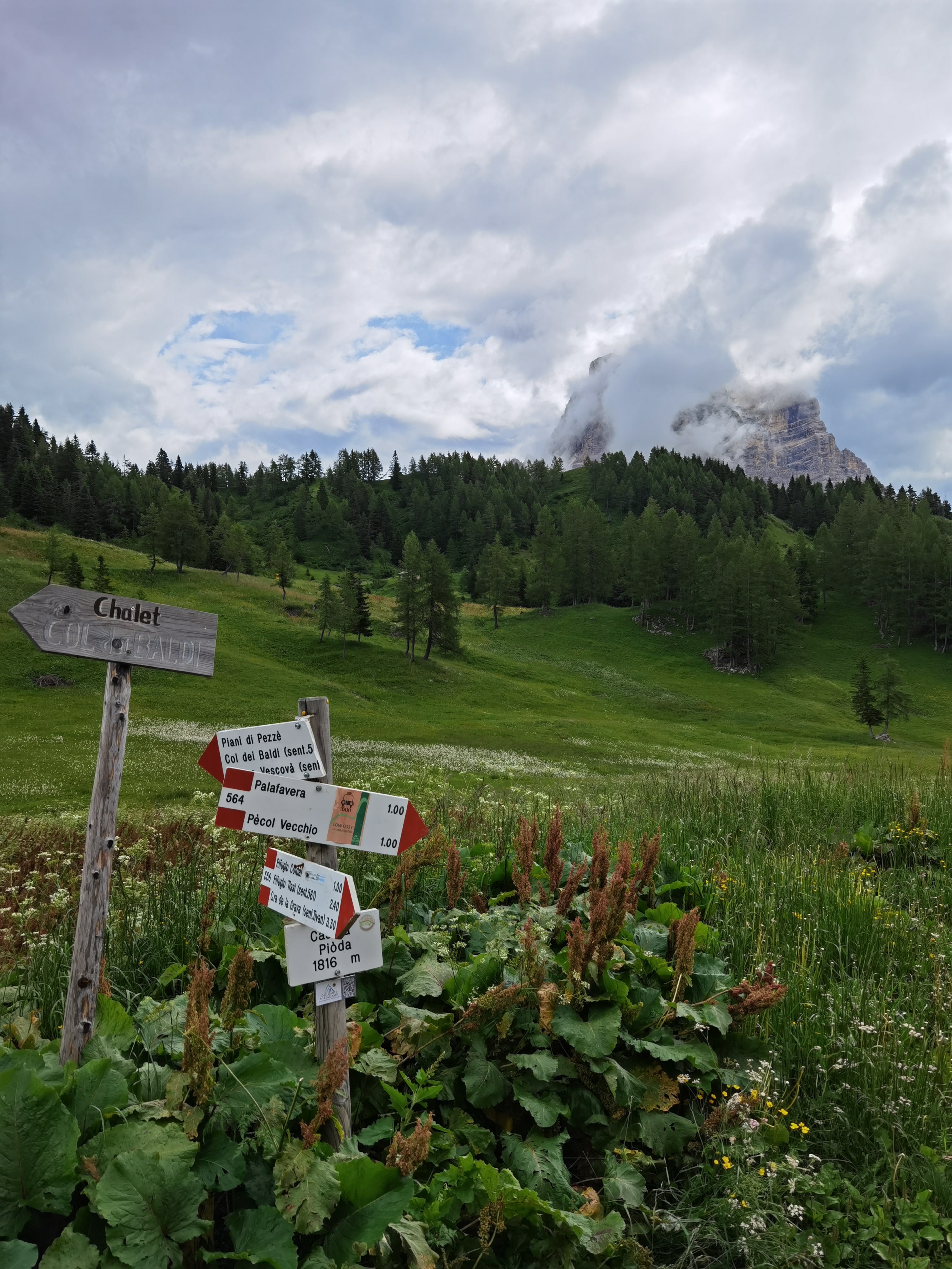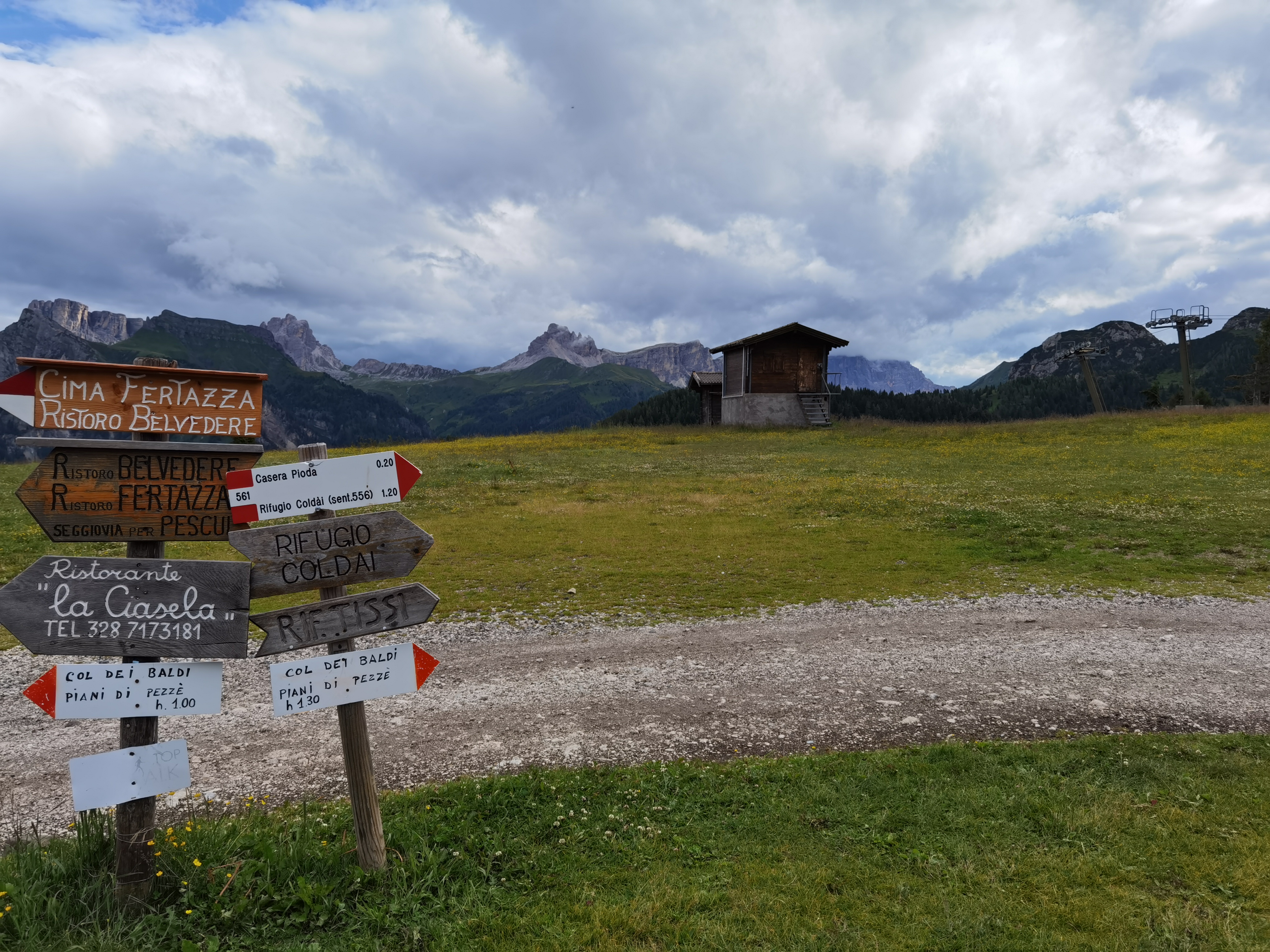 Lasciamo l’auto nelle vicinanze degli impianti di Alleghe, saliamo nell’ovovia che ci porta ai 1462m dei Piani di Pezzè (raggiungibile anche in auto, con sosta a pagamento) e subito dopo saliamo nella seconda ovovia che arriva sino a Col dei Baldi (m.1920), in poco meno di mezz’ora, punto di partenza della nostra escursione e di molte altre.