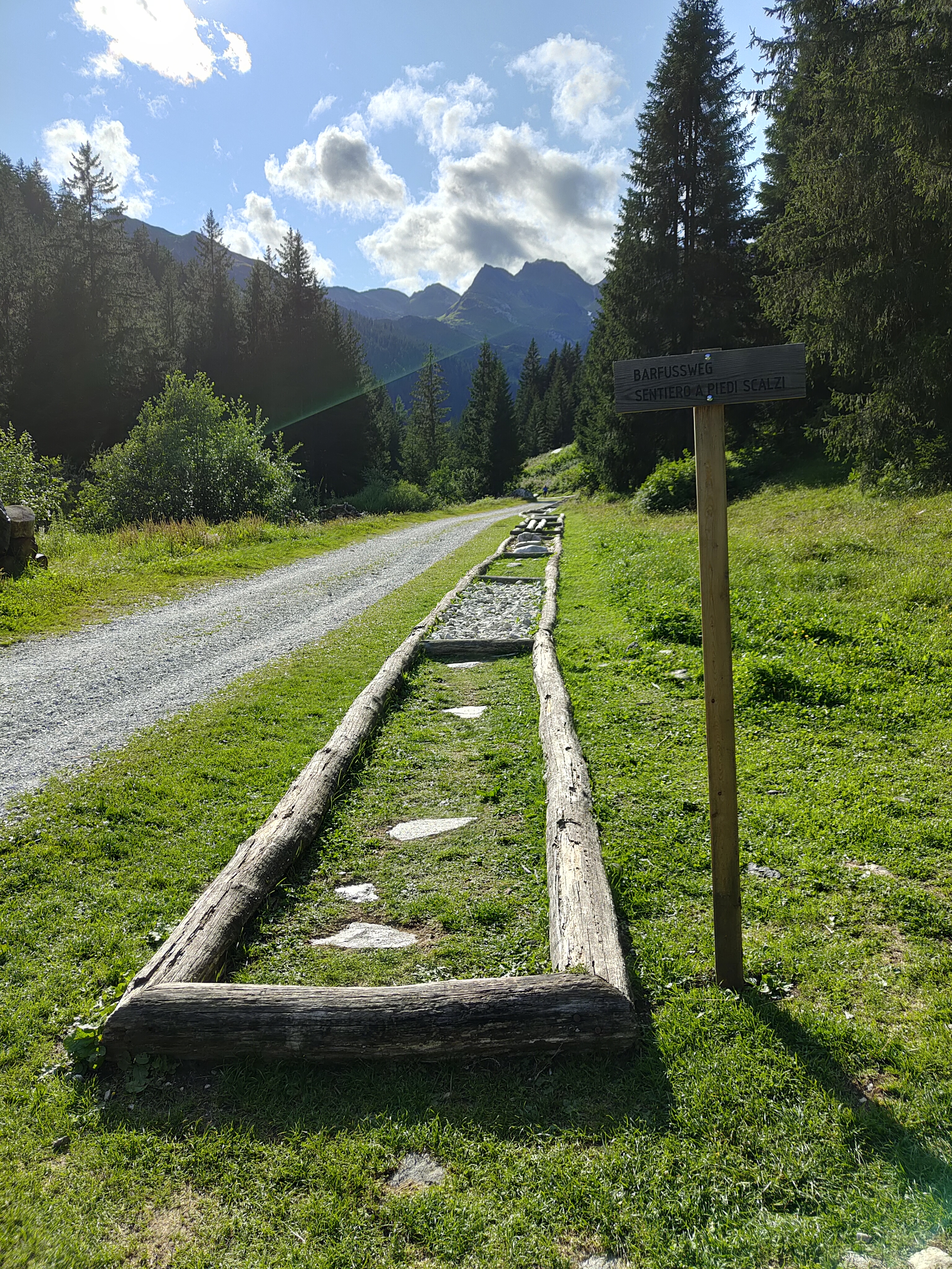Il punto di partenza del sentiero tematico a Vipiteno Racines è il Pulvererhof a soli 2 km dall’albergo Larchhof. Il sentiero a piedi scalzi nella Val Racines è lungo ca. 400 m ed è stato creato all’insegna del motto “sentire la natura” e invita ad esplorare la natura a piedi nudi. Per vivere la natura è importante sentire l’erba, la sabbia, i ciottoli, il marmo, il legno in tutte le sue forme, nonché il terreno del bosco. Il percorso tematico a Vipiteno Racines offre l’opportunità di “sentire” con i sensi: ruvido come roccia e la pietra, morbido come l’erba e il muschio oppure rinfrescante come l’acqua – ogni passo una nuova esperienza. Per poi non parlare del piacevole effetto salutare: un dolce massaggio di riflessologia plantare che stimola l’organismo e attiva il sistema immunitario.