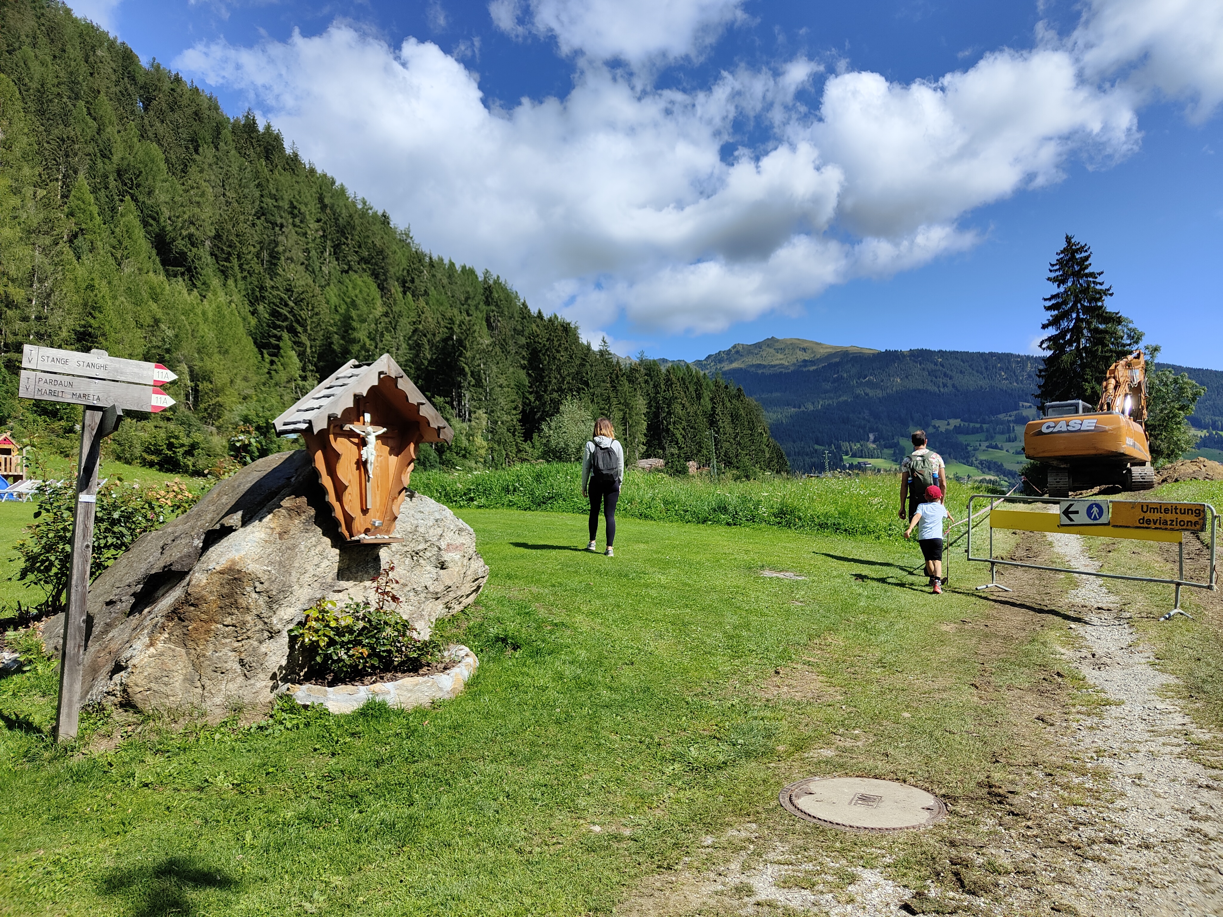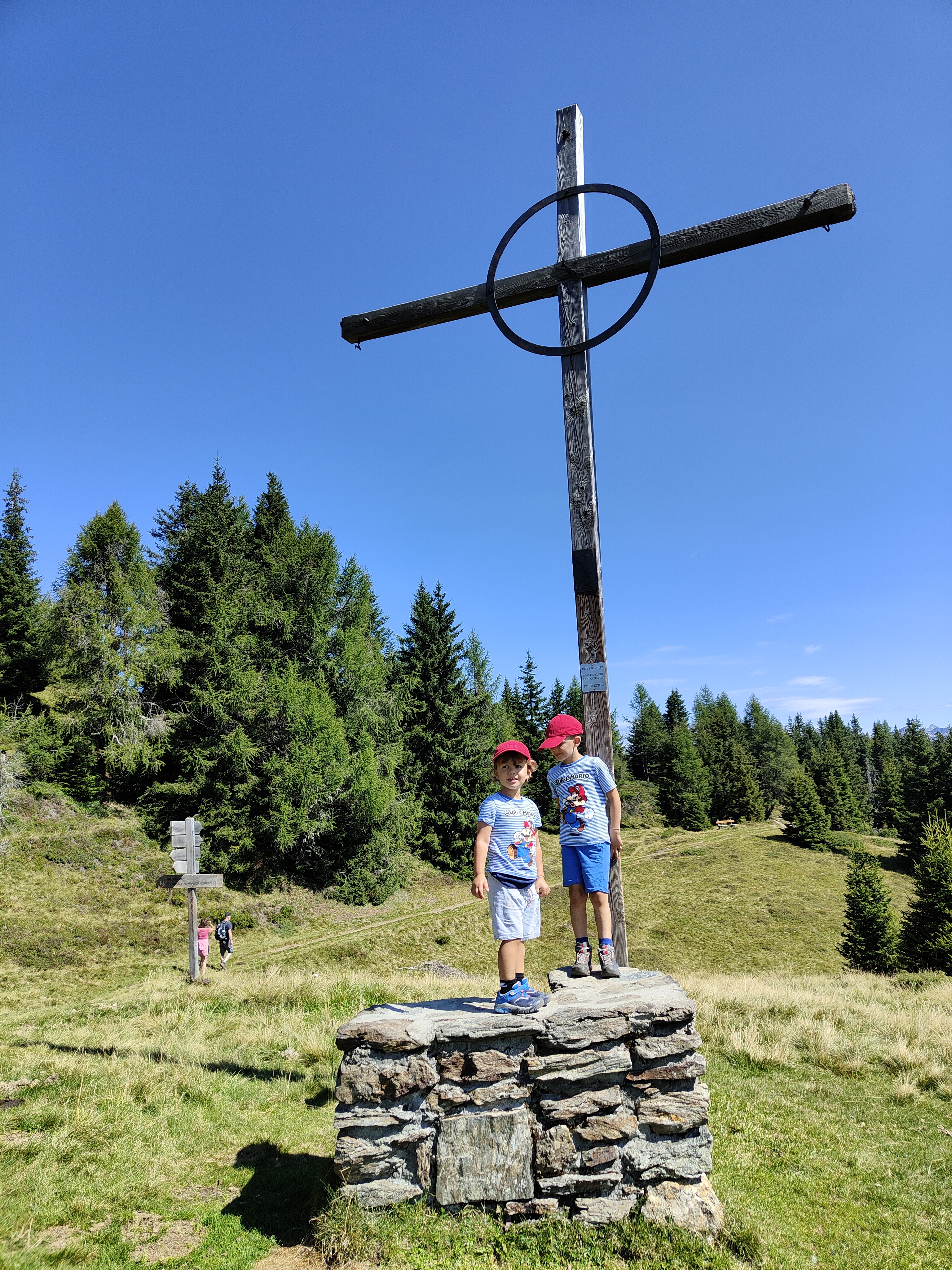 Nel giro di poco meno di un’oretta avrete raggiunto “Kastellake“, con pannelli esplicativi, panchine e un sacco di girini da osservare. C’è anche la croce “di battesimo”. Si prosegue fino alla Sterzingerhütte (ultimi 40 min circa) lungo un sentiero di bosco abbastanza stretto.