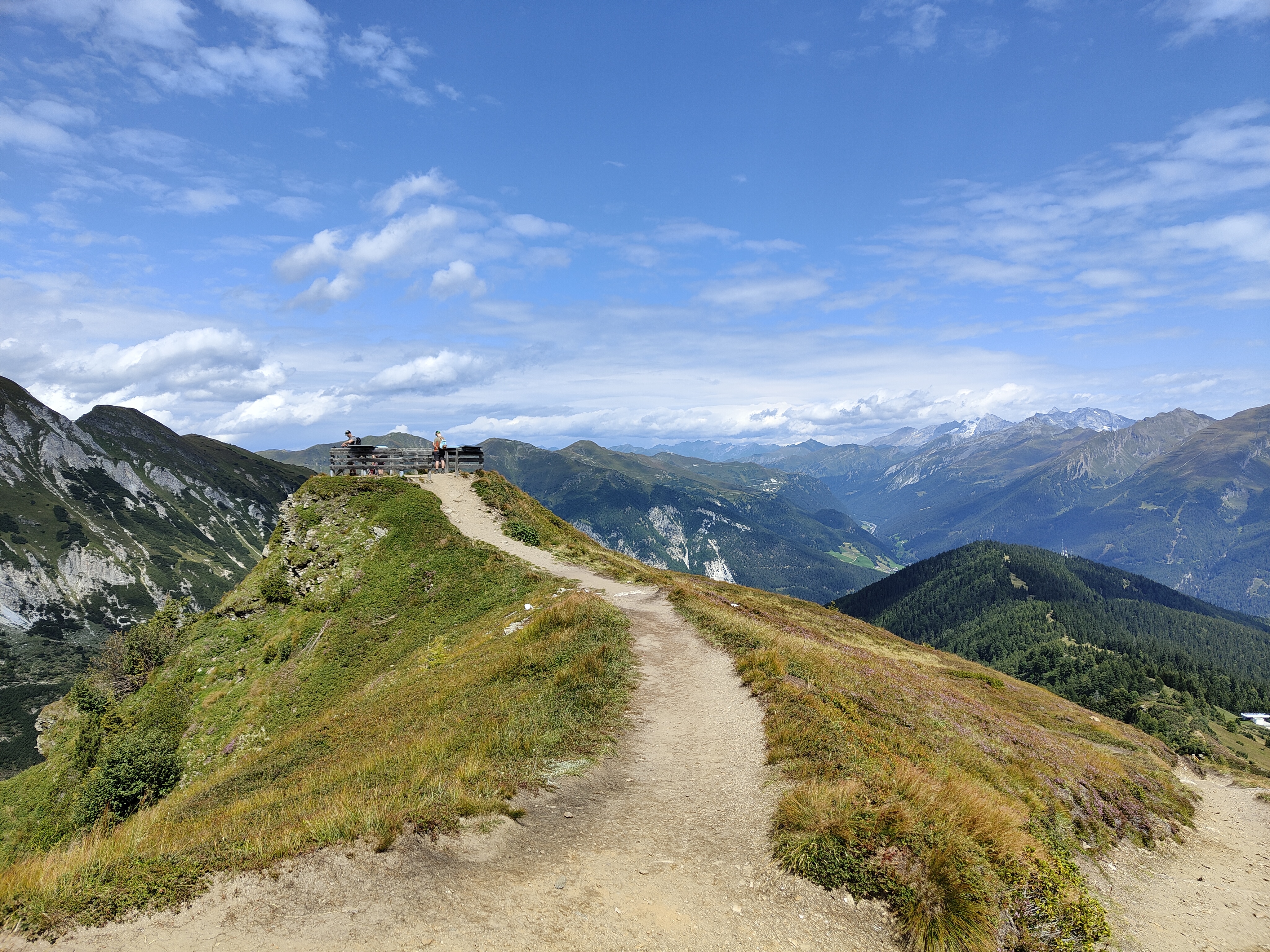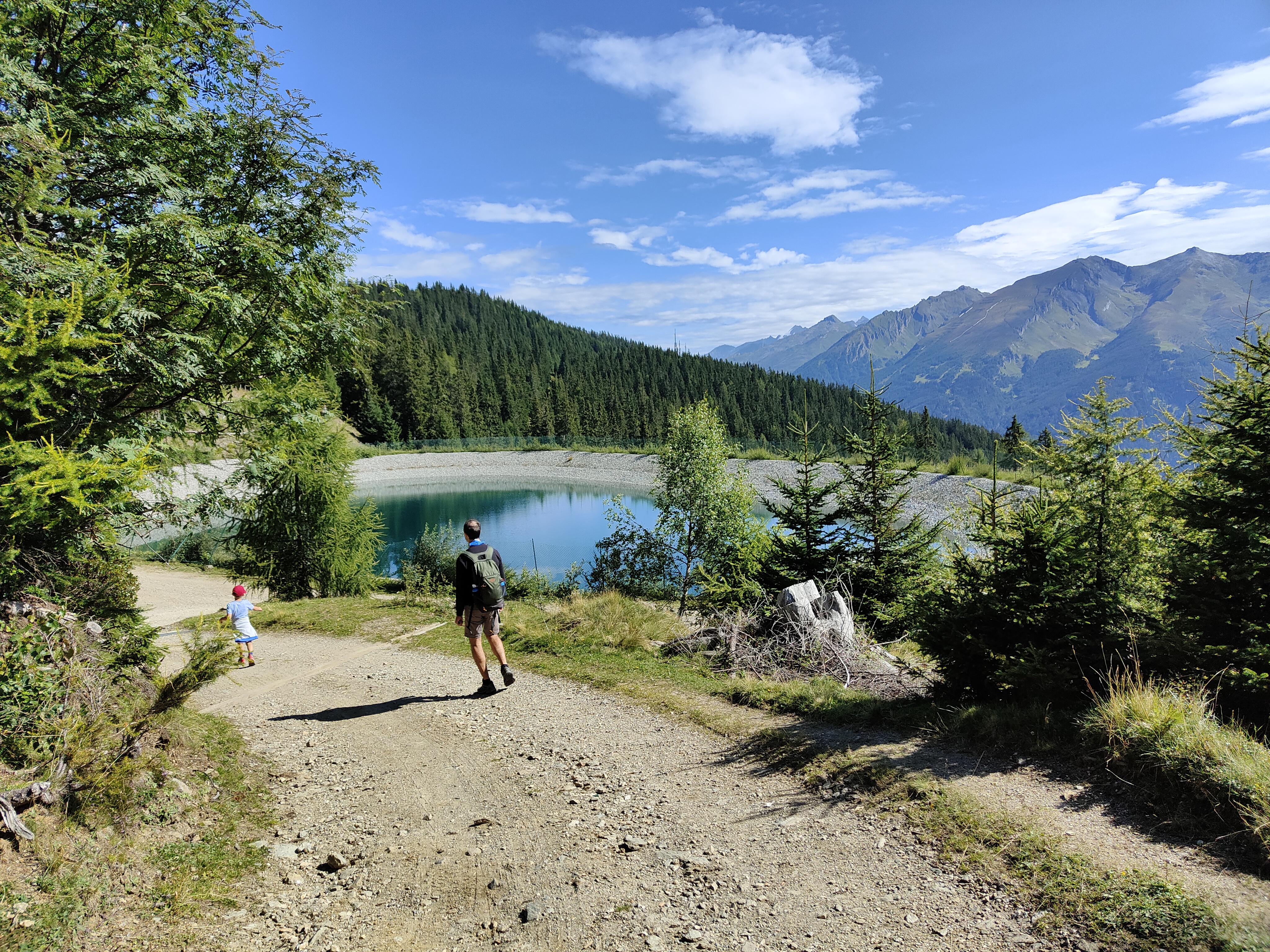 Poco dopo la Furlhütte ecco il bacino d’acqua dai bellissimi colori in cui si specchia la corona circostante (proseguite oltre la baita): Alpi Sarentine, Val di Vizze, le vette delle Dolomiti all’orizzonte. Da qui prosegue il giro ad anello, su una comoda e ampia strada sterrata, fino al bivio dove potete scegliere se proseguire (sul sentiero panoramico) o salire a sinistra completando il sentiero per famiglie. Man mano i cartelli vi indicano a quale chilometro del sentiero siete già arrivati, così potete farvi un’idea di quanto manchi all’arrivo.