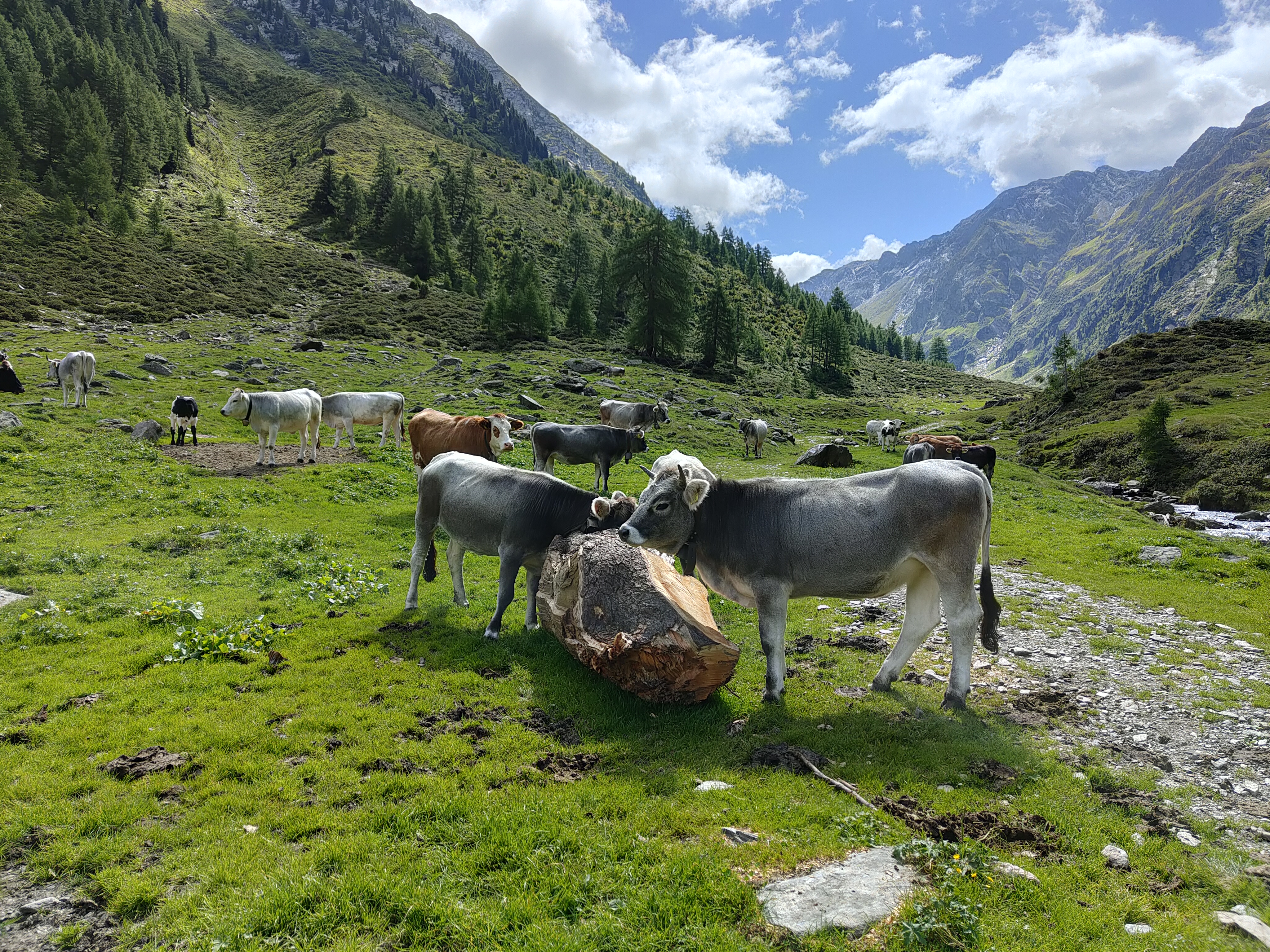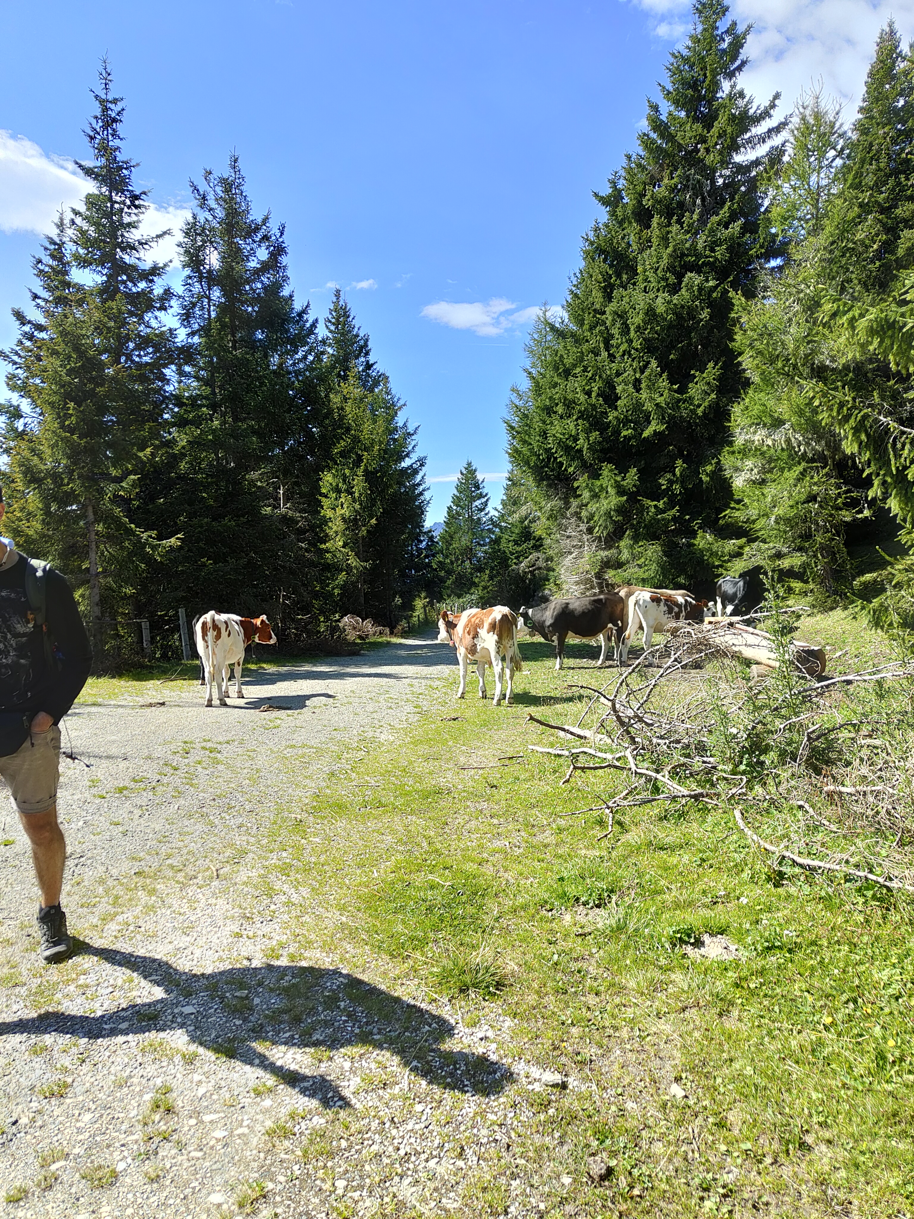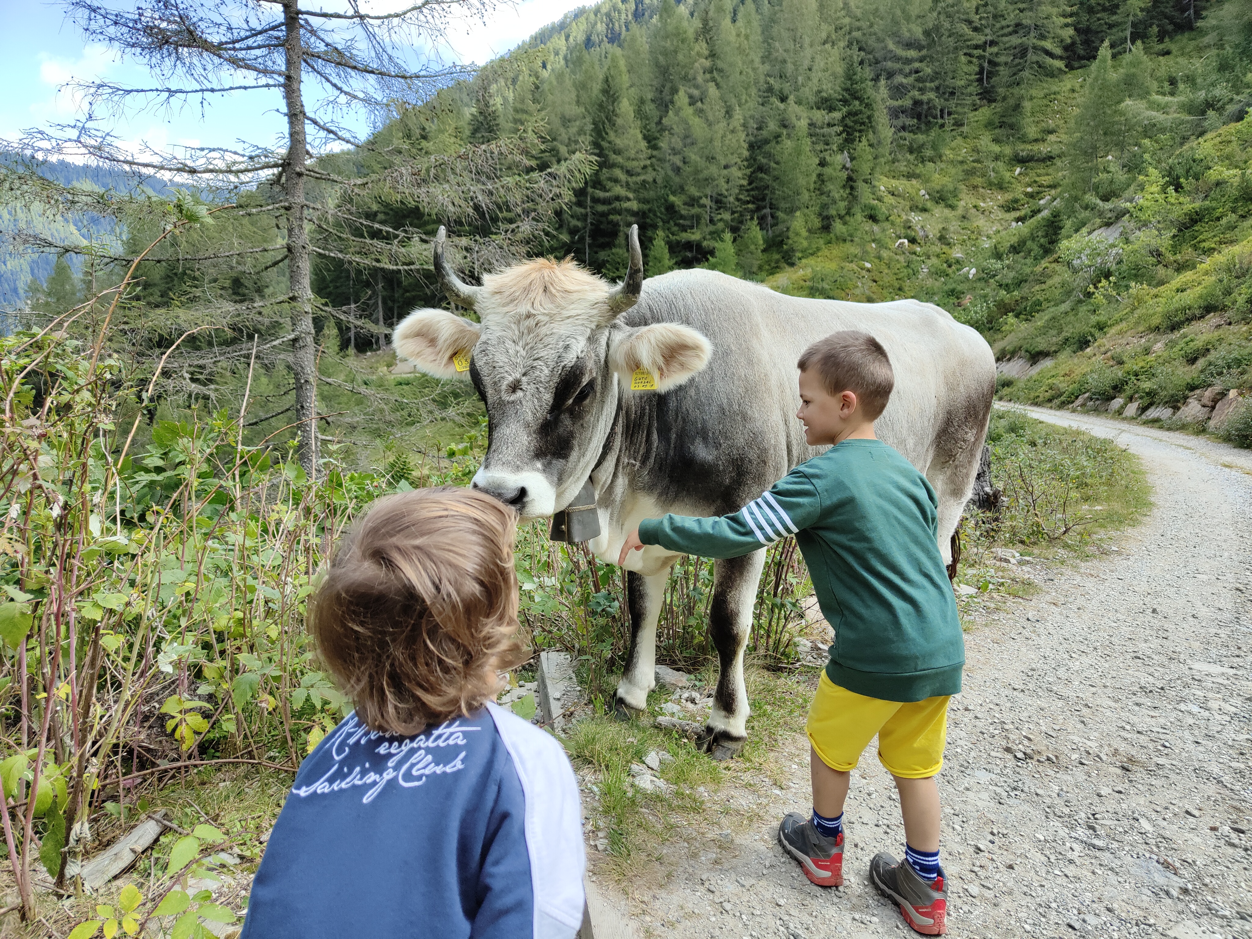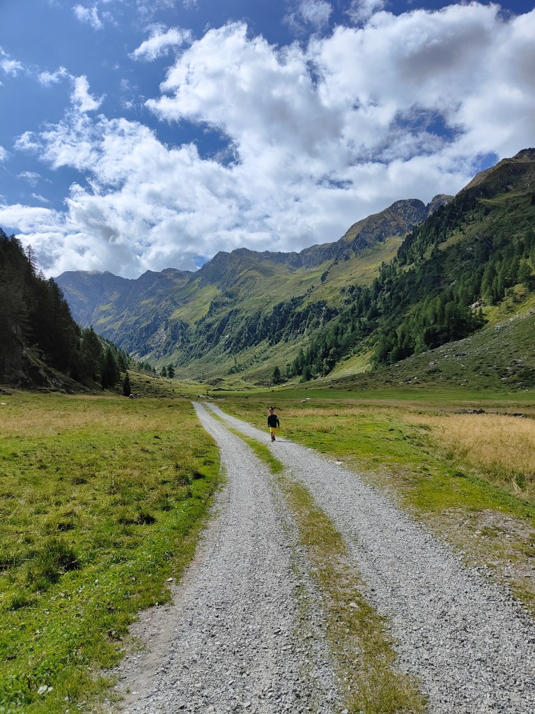 Il nostro sentiero è quello da 6 km, ci incamminiamo seguendo le indicazioni. La prima malga che incontriamo è la Furlhütte (15 min circa), passando per un bel bosco dove pascolano libere le mucche d’estate. Fin qui si arriva anche con un passeggino tra trekking.