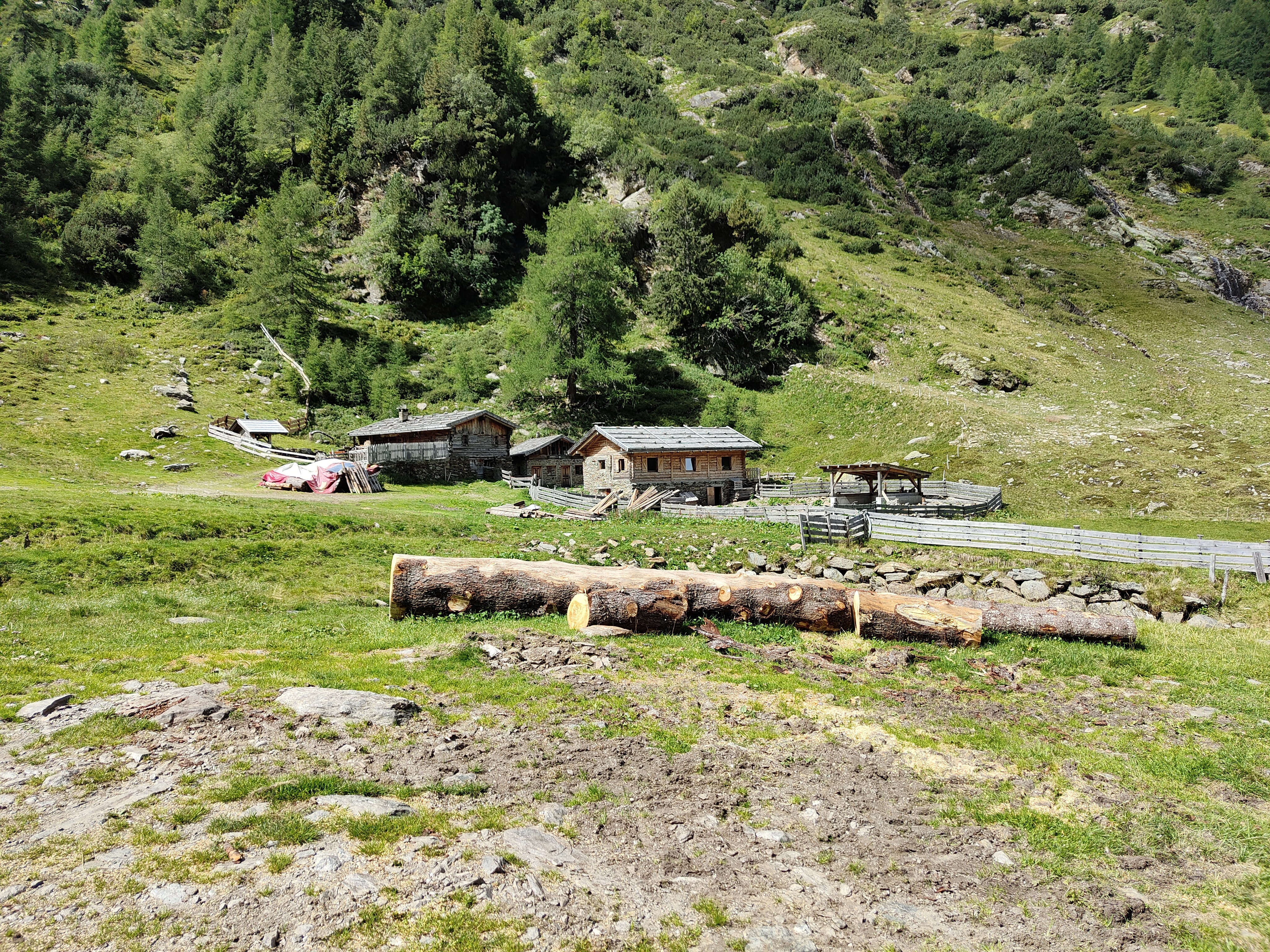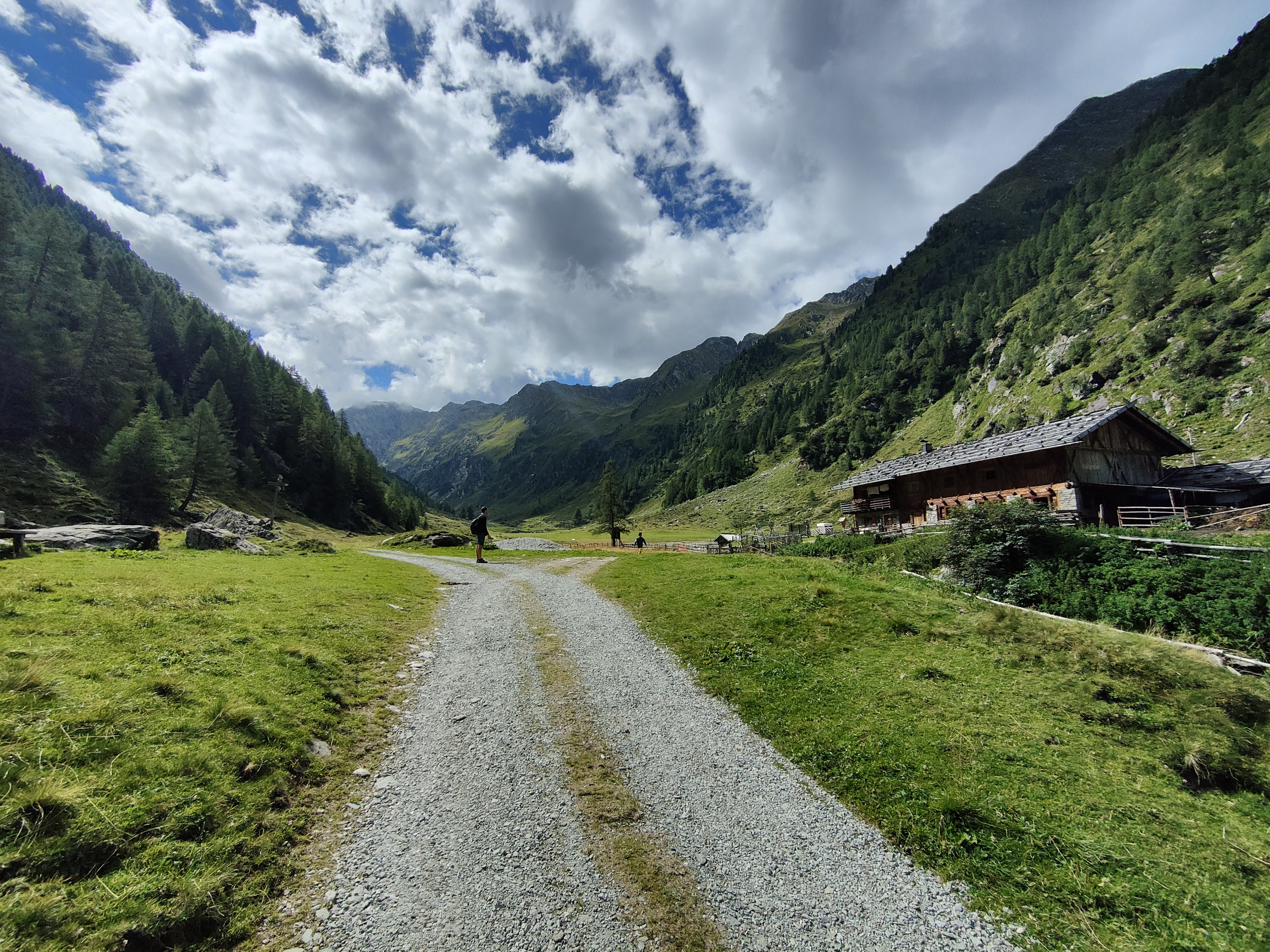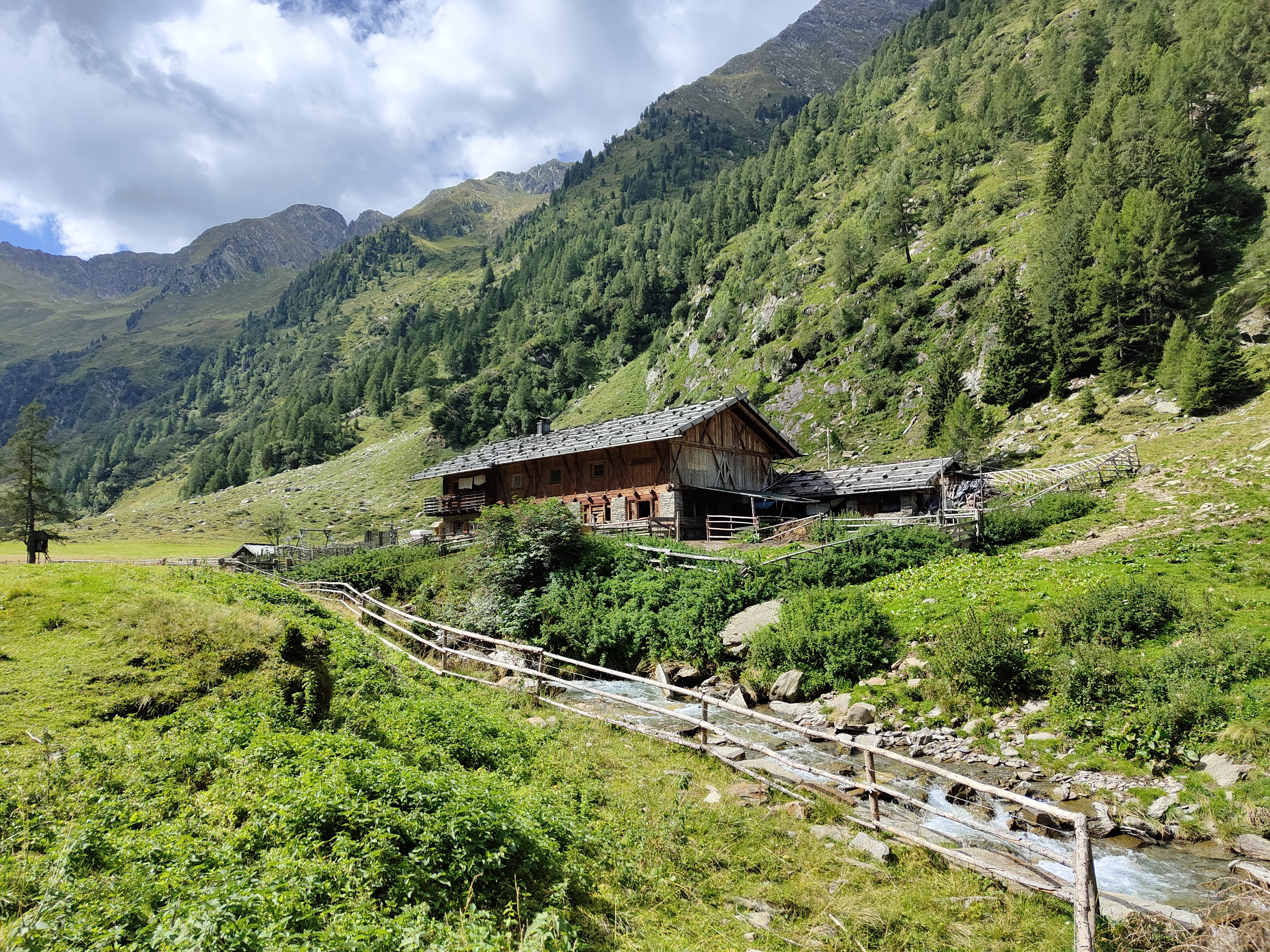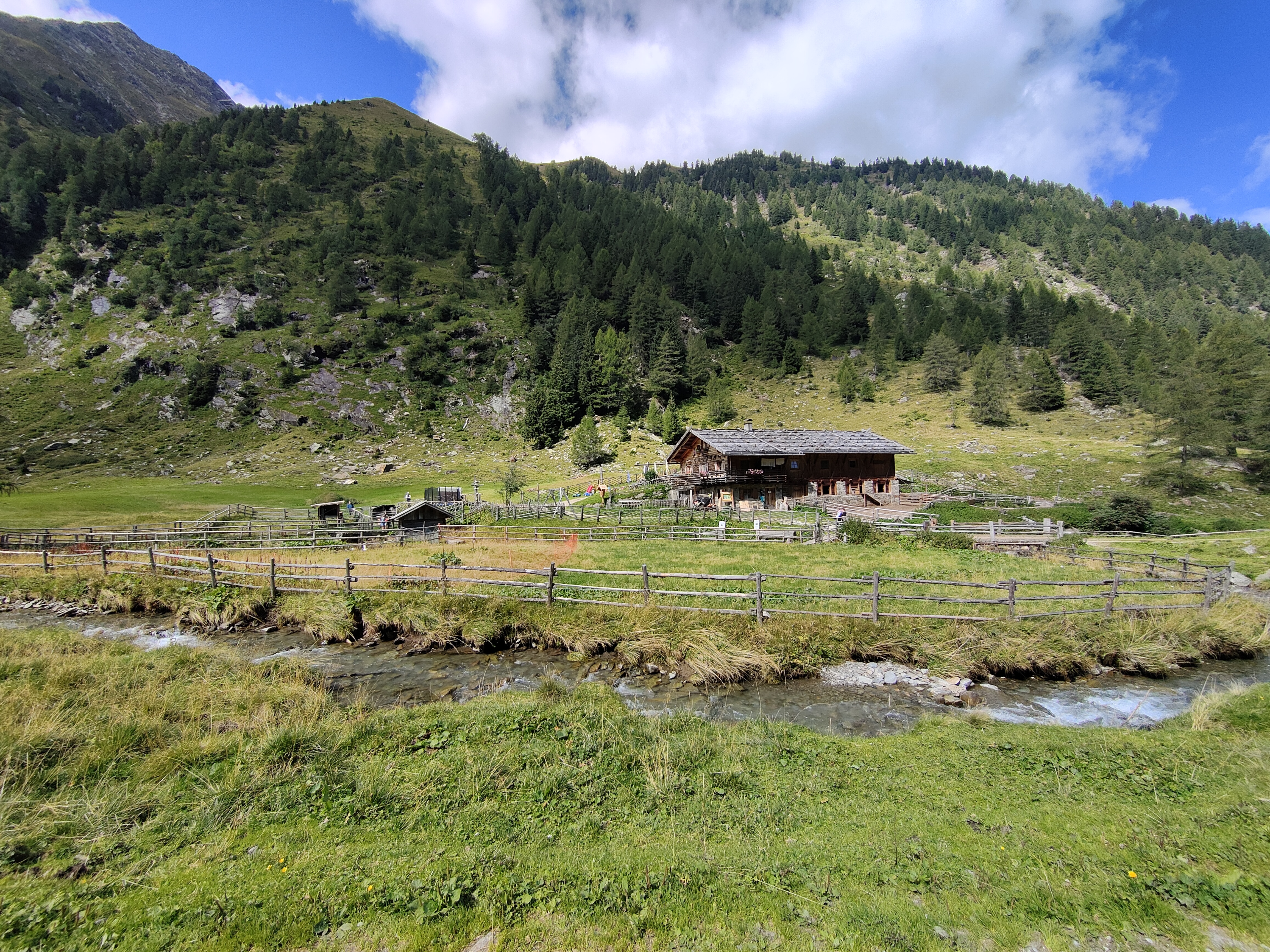 Il nostro sentiero è quello da 6 km, ci incamminiamo seguendo le indicazioni. La prima malga che incontriamo è la Furlhütte (15 min circa), passando per un bel bosco dove pascolano libere le mucche d’estate. Fin qui si arriva anche con un passeggino tra trekking.