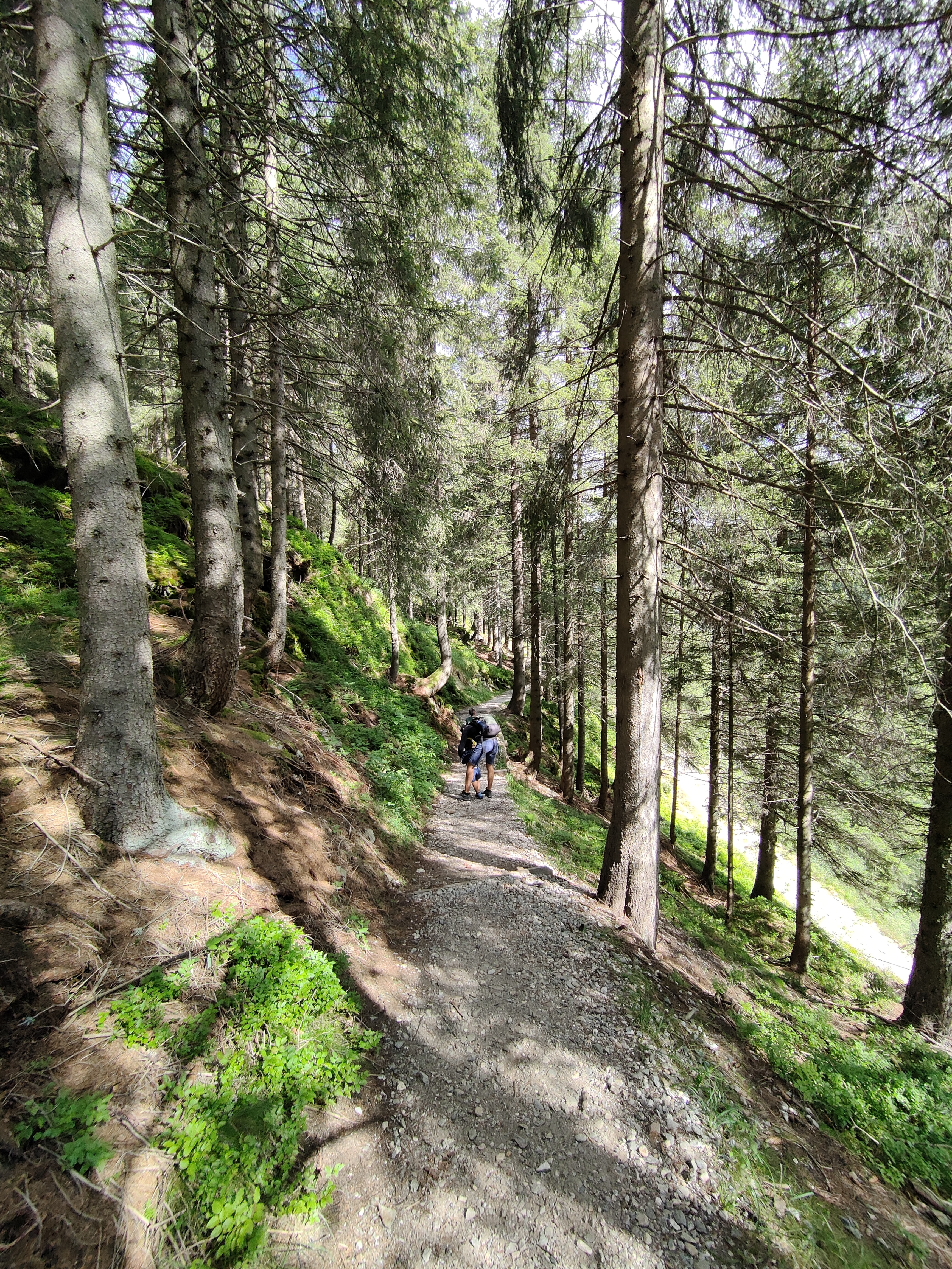 Avevamo due zaini da 30lt, per cambi, Power Bank, acqua, cibo per merende/pranzi. Spesso l’acqua si ricarica lungo i ruscelli, sorgenti e fontane. E per sicurezza l’immancabile tula toddler, che abbiamo usato pochissimo, Nicolas era attivo in tutte le camminate anche se ad ogni salita chiedeva del cibo.