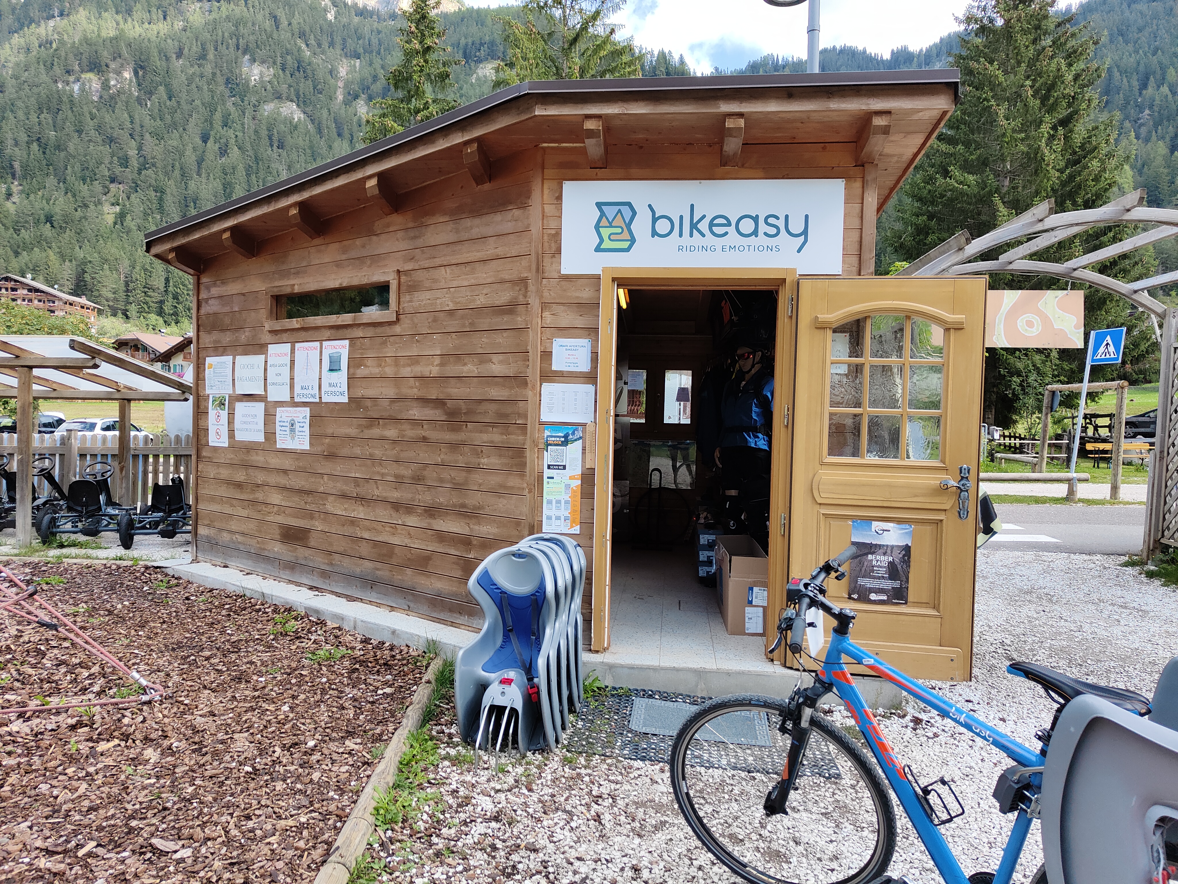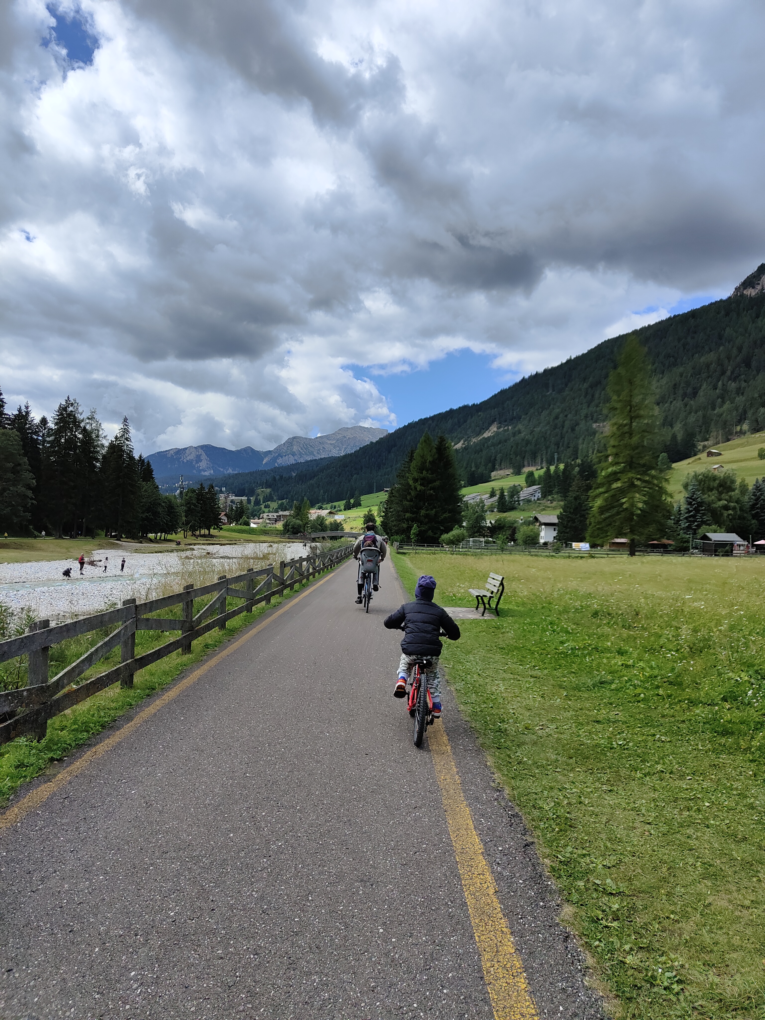 Oggi andiamo a Canazei punto di partenza della famosa pista ciclabile, noleggiamo le biciclette da Bikeasy, la pista ciclabile che attraversa le valli di Fassa e Fiemme è l’ideale per tutti. Il percorso è semplice e senza punti di difficoltà. Facciamo tappa a Pera, dove pranziamo e ci divertiamo nei tantissimi giochi e nell’immancabile giretto sulla zattera che attraversa il laghetto. Un pony e pecore libere tra le persone a contatto con i bambini, più natura di così. Vicino c’è anche un agriturismo e un parco avventura con percorsi attrezzati di varie difficoltà.