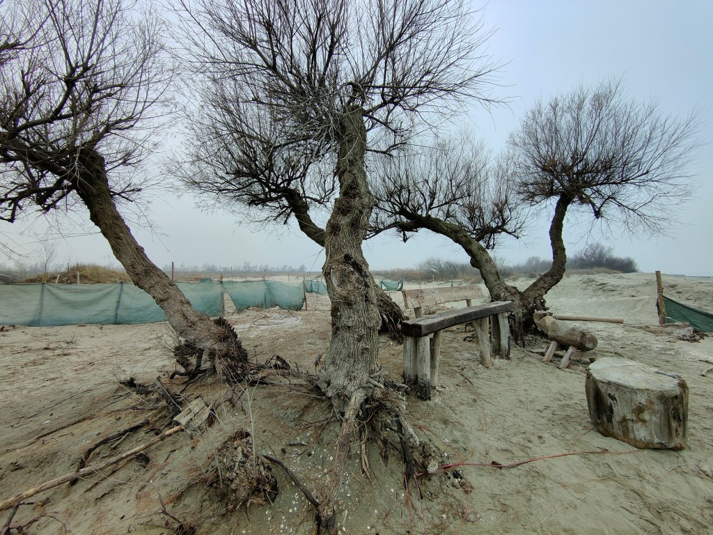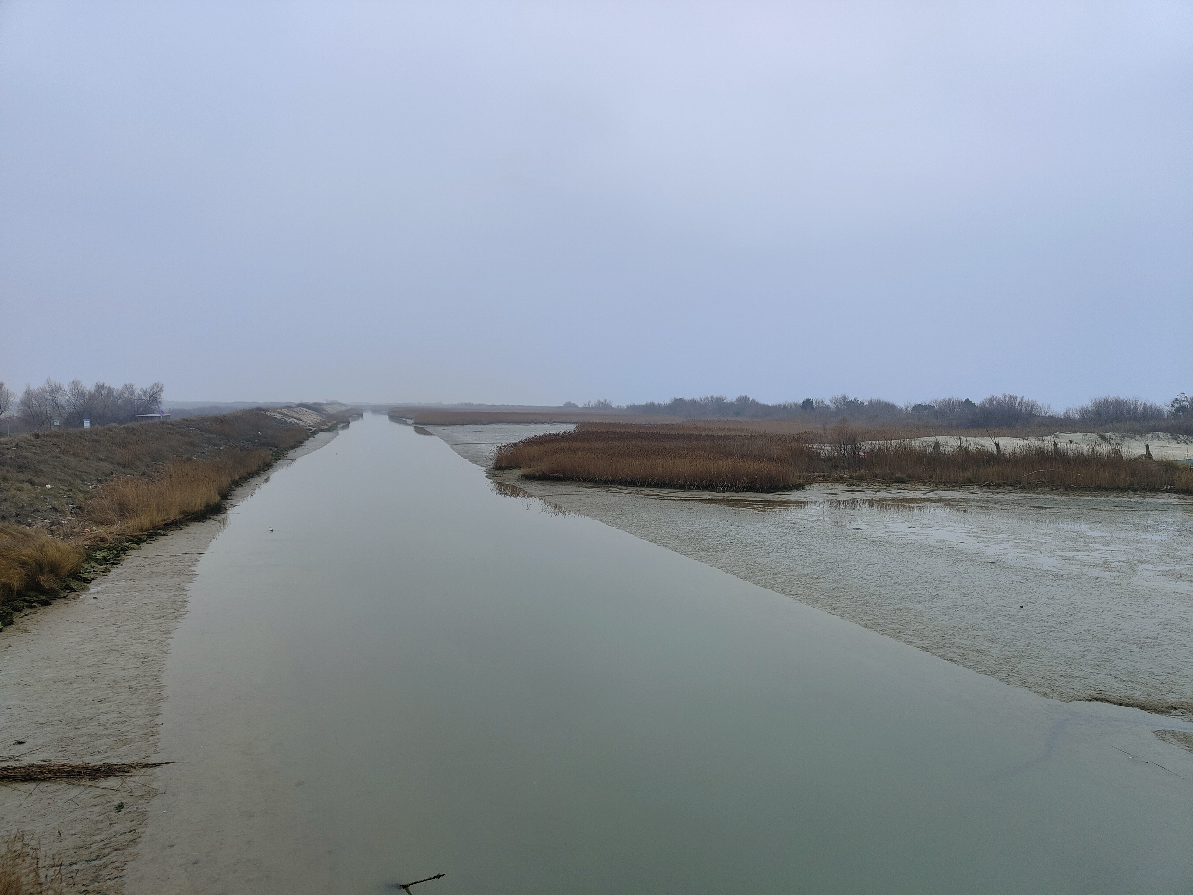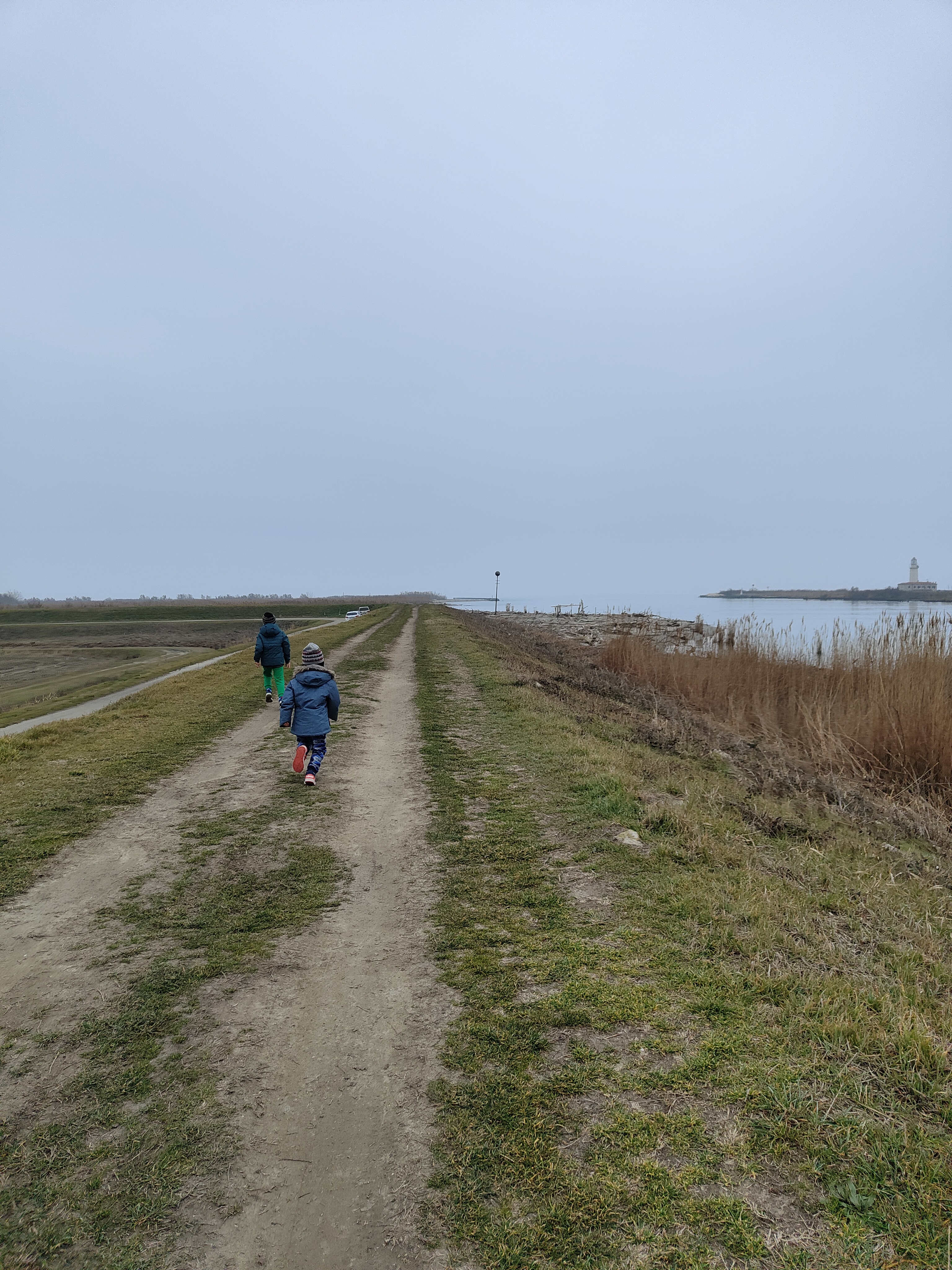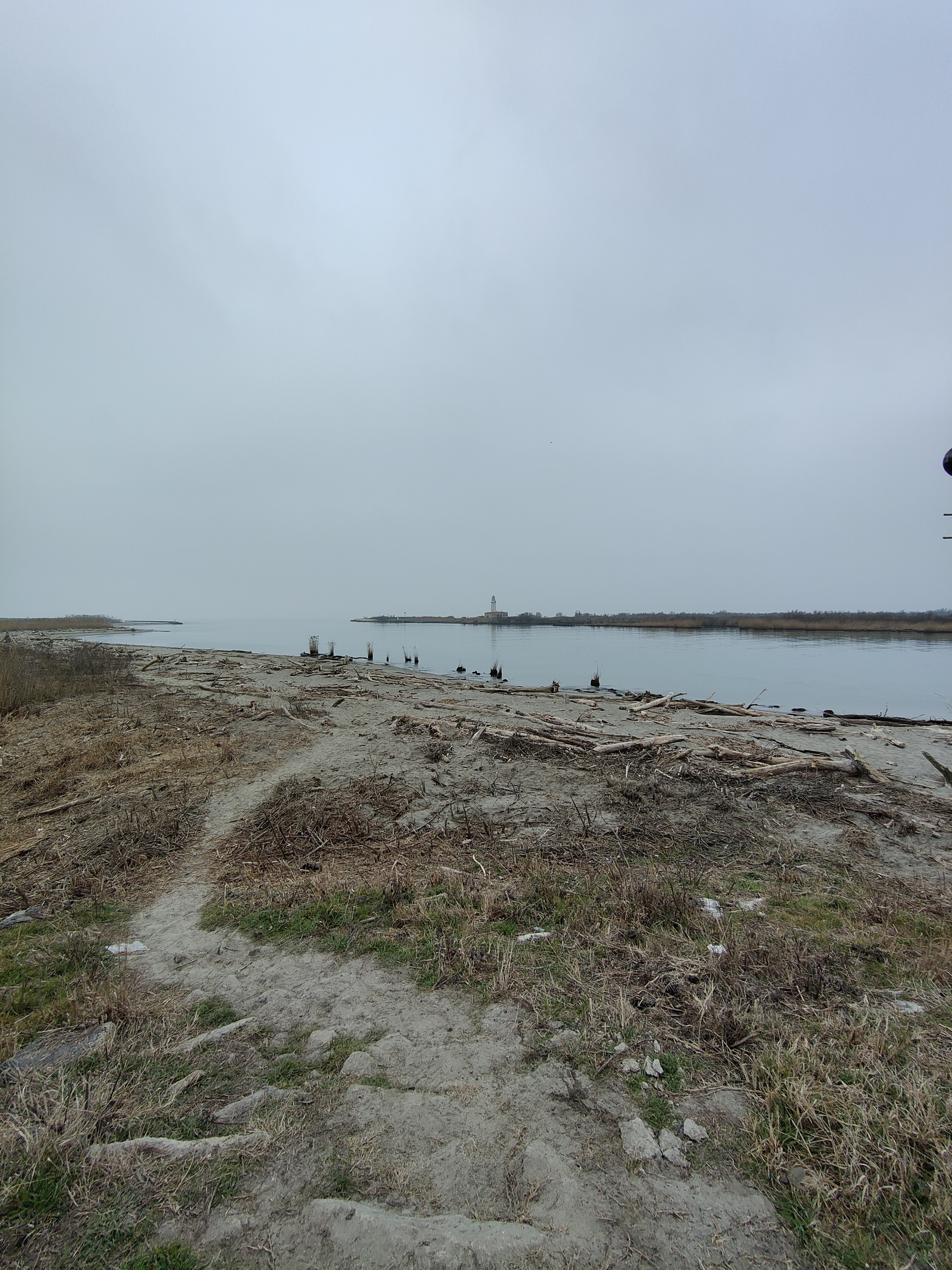 La spiaggia si trova a Porto Tolle, all’interno del Parco Regionale Veneto del Delta del Pò. Abbiamo lasciato alle spalle la strada statale Romea, altri 15 km nella campagna bonificata fino ad un parcheggio gratuito d’inverno. Attraversiamo un suggestivo ponte di legno pedonale e raggiungiamo in spiaggia.