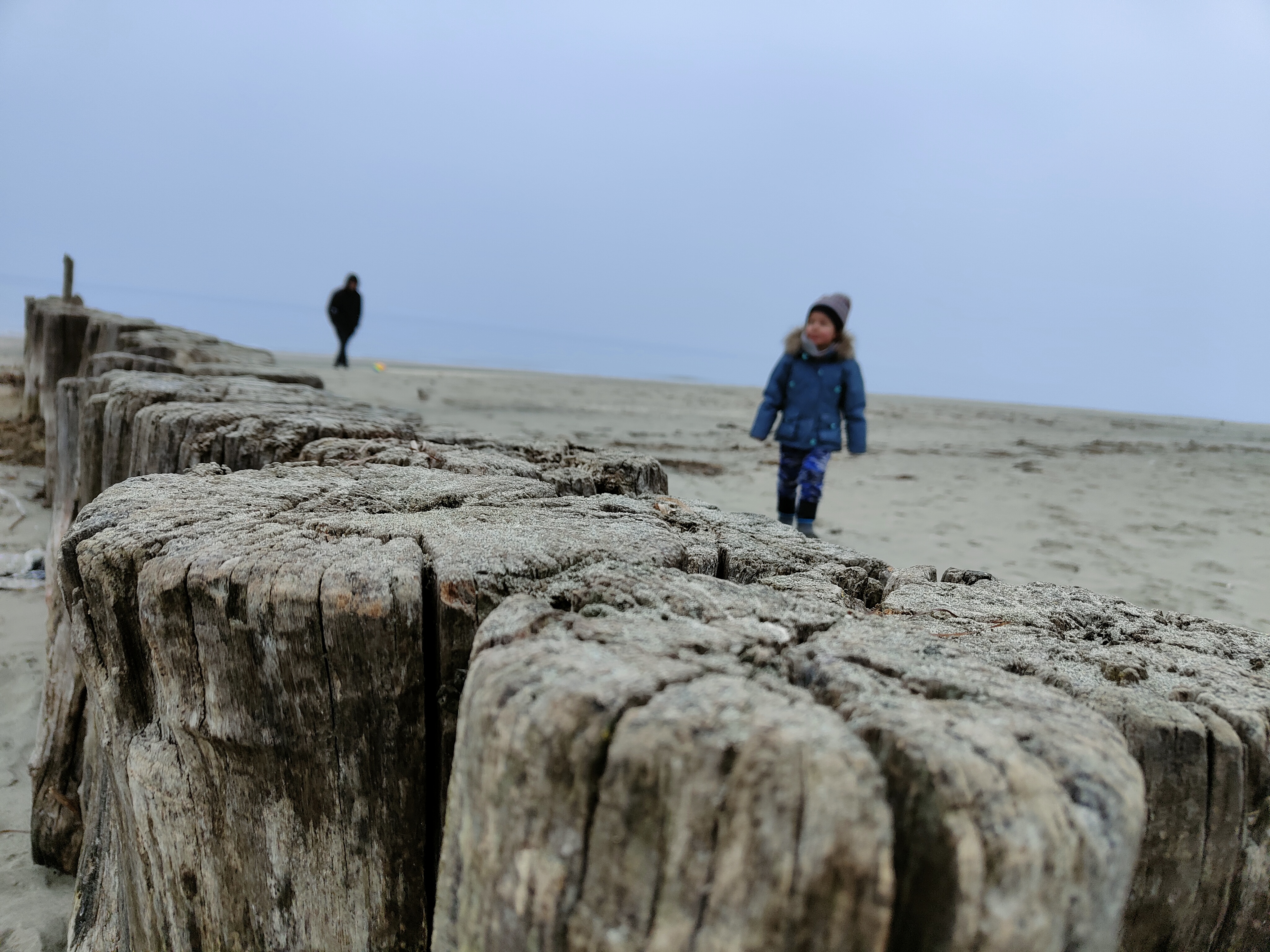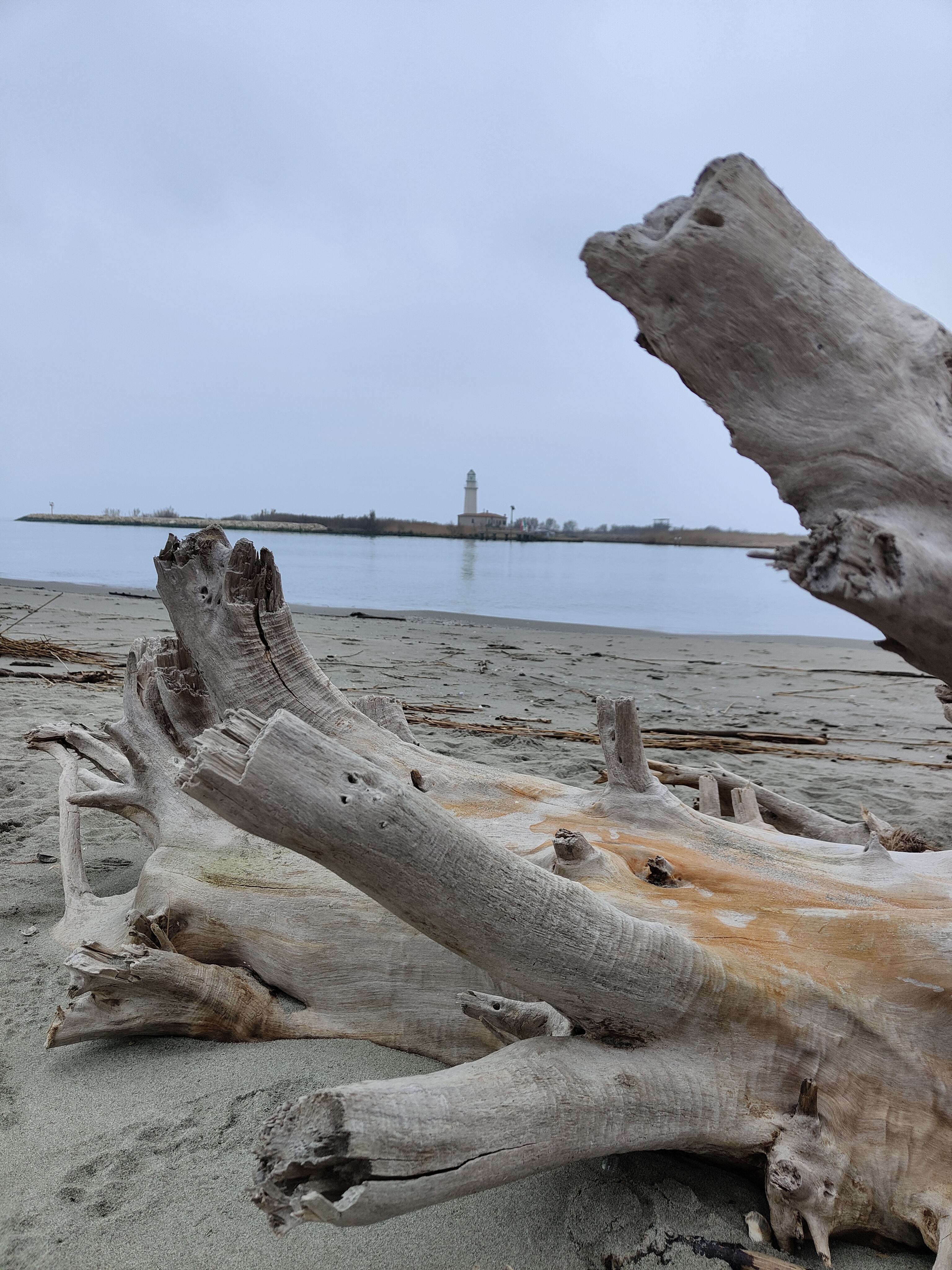 La nostra prima tappa è sulla Spiaggia Boccasette, il mare d’inverno ha sempre il suo fascino, sensazione di libertà, soli a camminare sulla sabbia umida ad osservare e scovare conchiglie e rami particolari portati dal mare a riva.