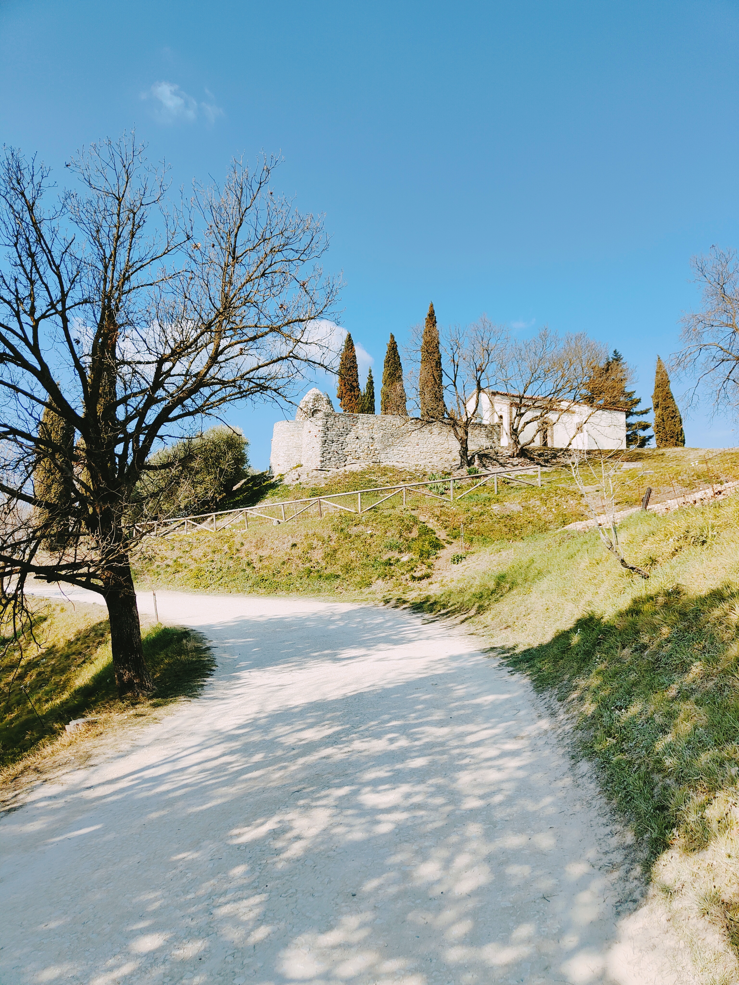 Passeggiare su bianche stradine, baciati da un sole tiepido, sentire lo scricchiolio dei sassi calpestati, il profumo dei fiori dei mandorli, il cielo limpido.