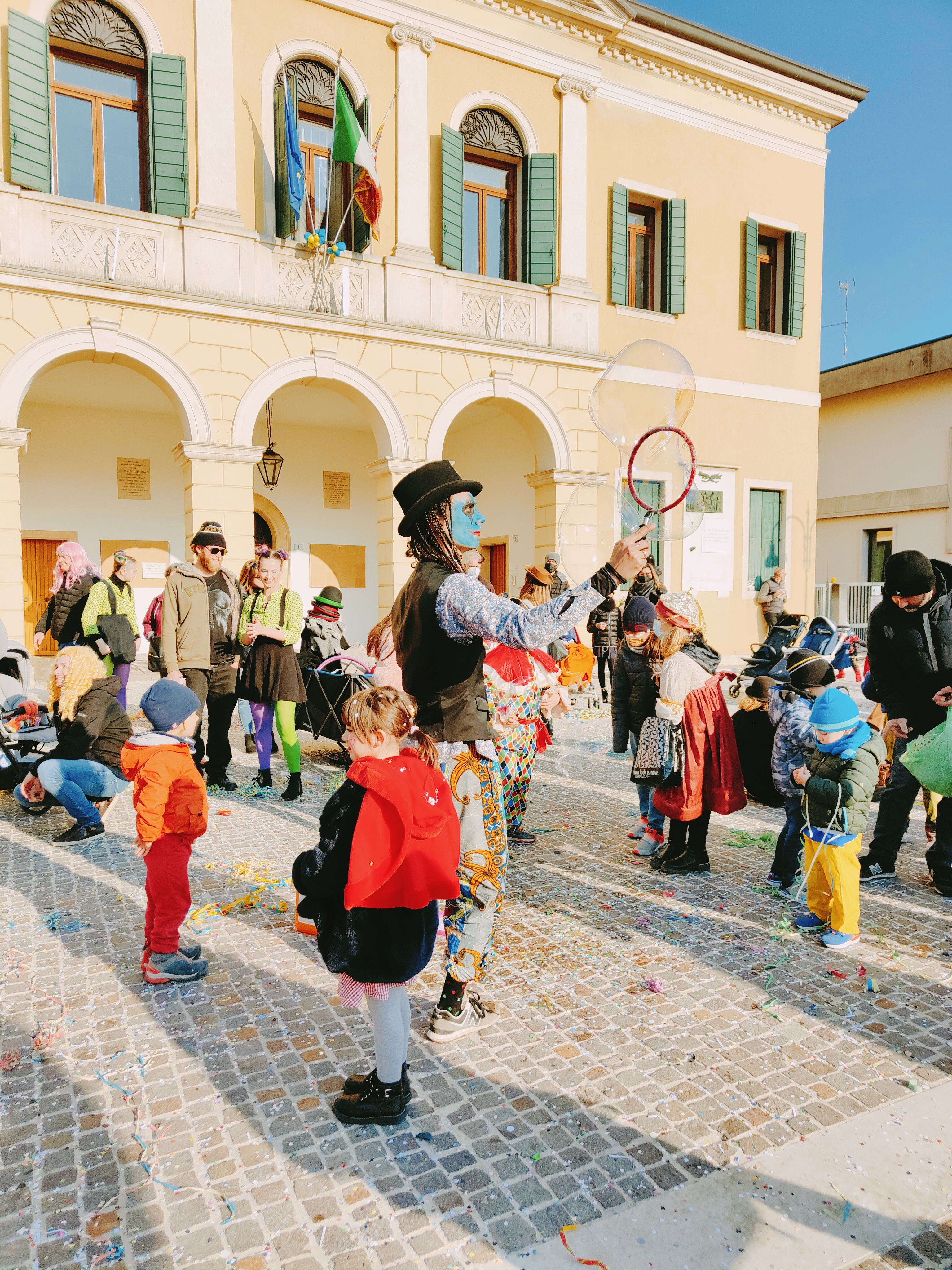 La nostra giornata termina al Carnevale, a Casale di Scodosia in provincia di Padova tra carri mascherati, luna park e artisti di strada.