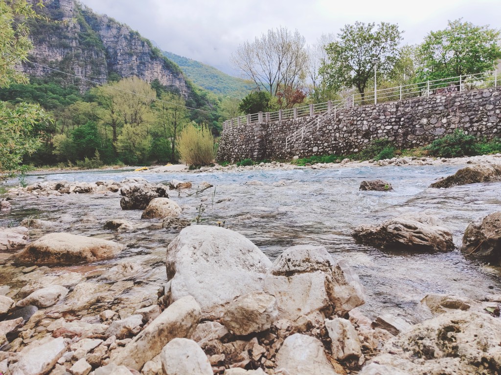 Terminata la visita alle grotte passeggiamo fino a Valstagna lungo il fiume Brenta, circa 10 minuti. Lungo il fiume ci sono panchine e tavoli per pic-nic.