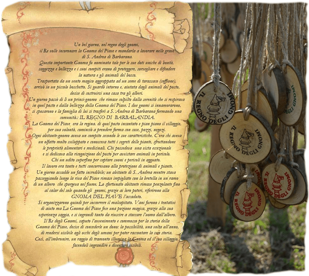 Il Regno degli gnomi è una manifestazione creata per i bambini e le famiglie che evoca il fantastico mondo degli gnomi nell’incantevole paesaggio della golena del Piave in quel di Sant’Andrea di Barbarana, una frazione nel Comune di San Biagio di Callalta in provincia di Treviso. Per l’occasione gli Gnomi Operosi e le Gnome Laboriose organizzano ogni anno una spedizione per grandi e bambini nel giorno della magica riapparizione del Villaggio insieme a tante storie, giochi, natura, sorprese, incontri, condivisione e possibilità di pranzare o cenare dopo la camminata.