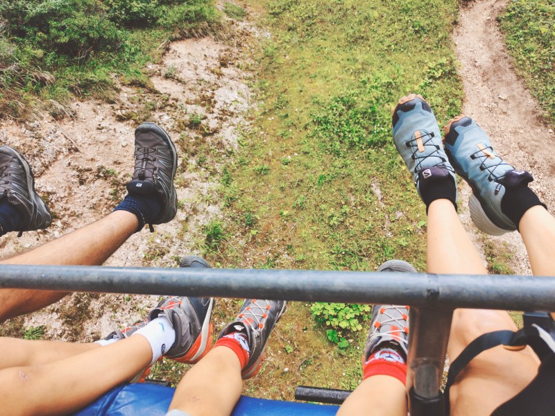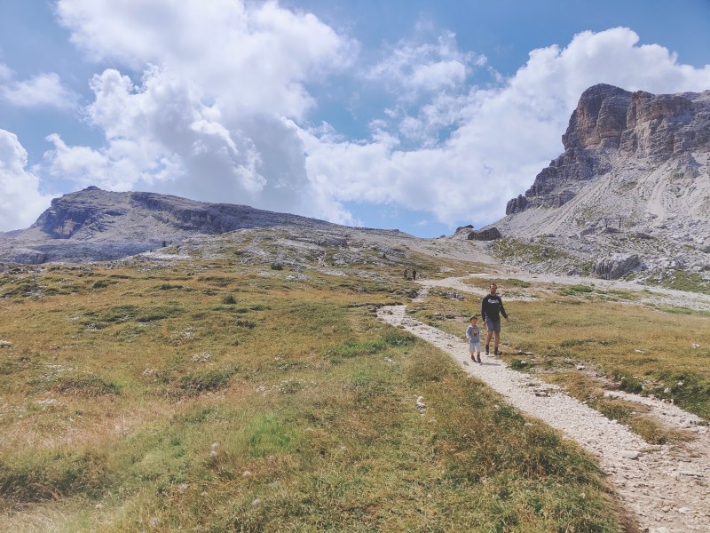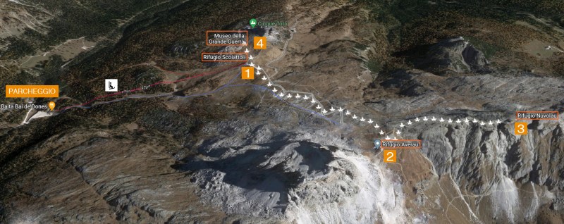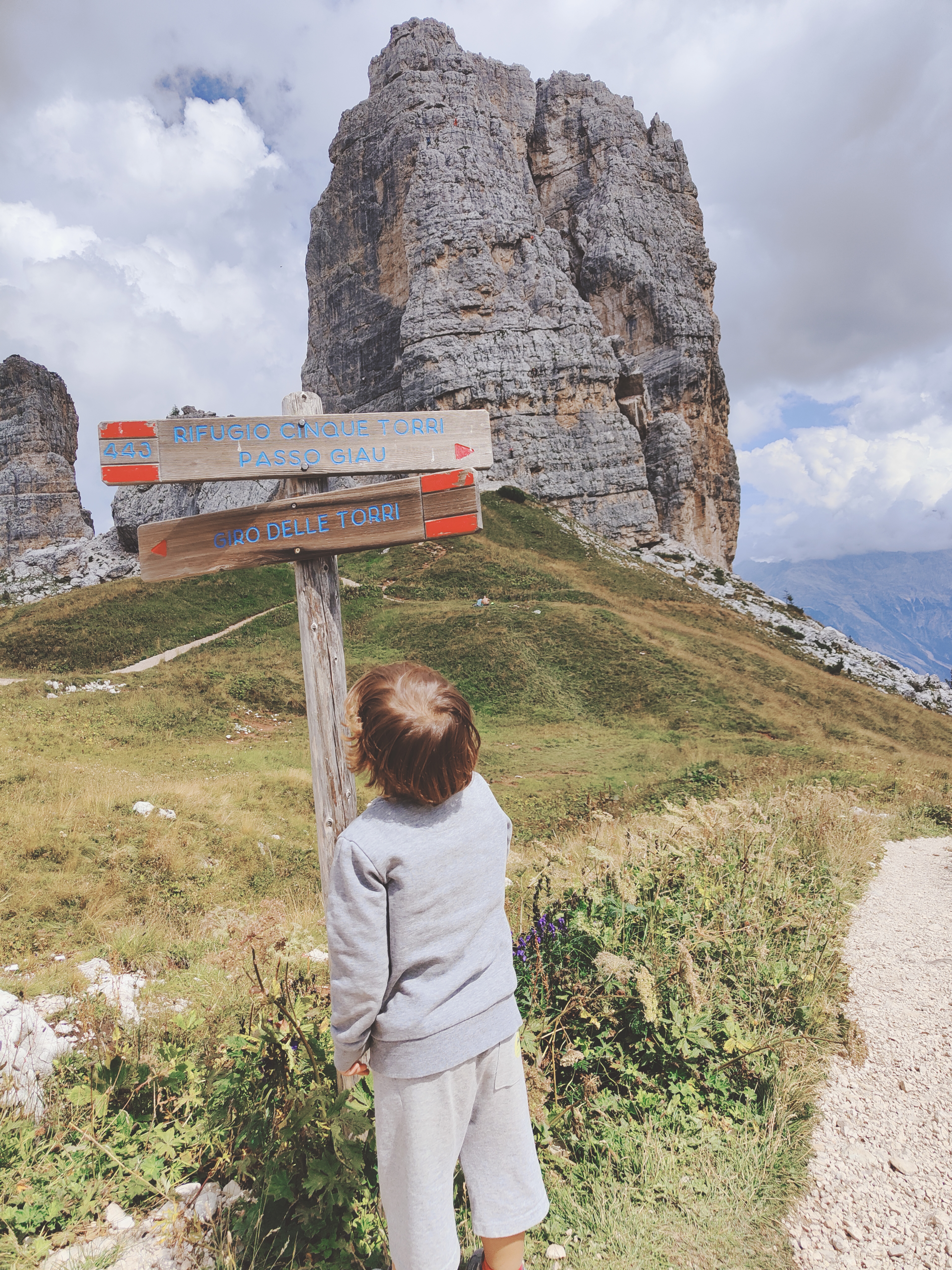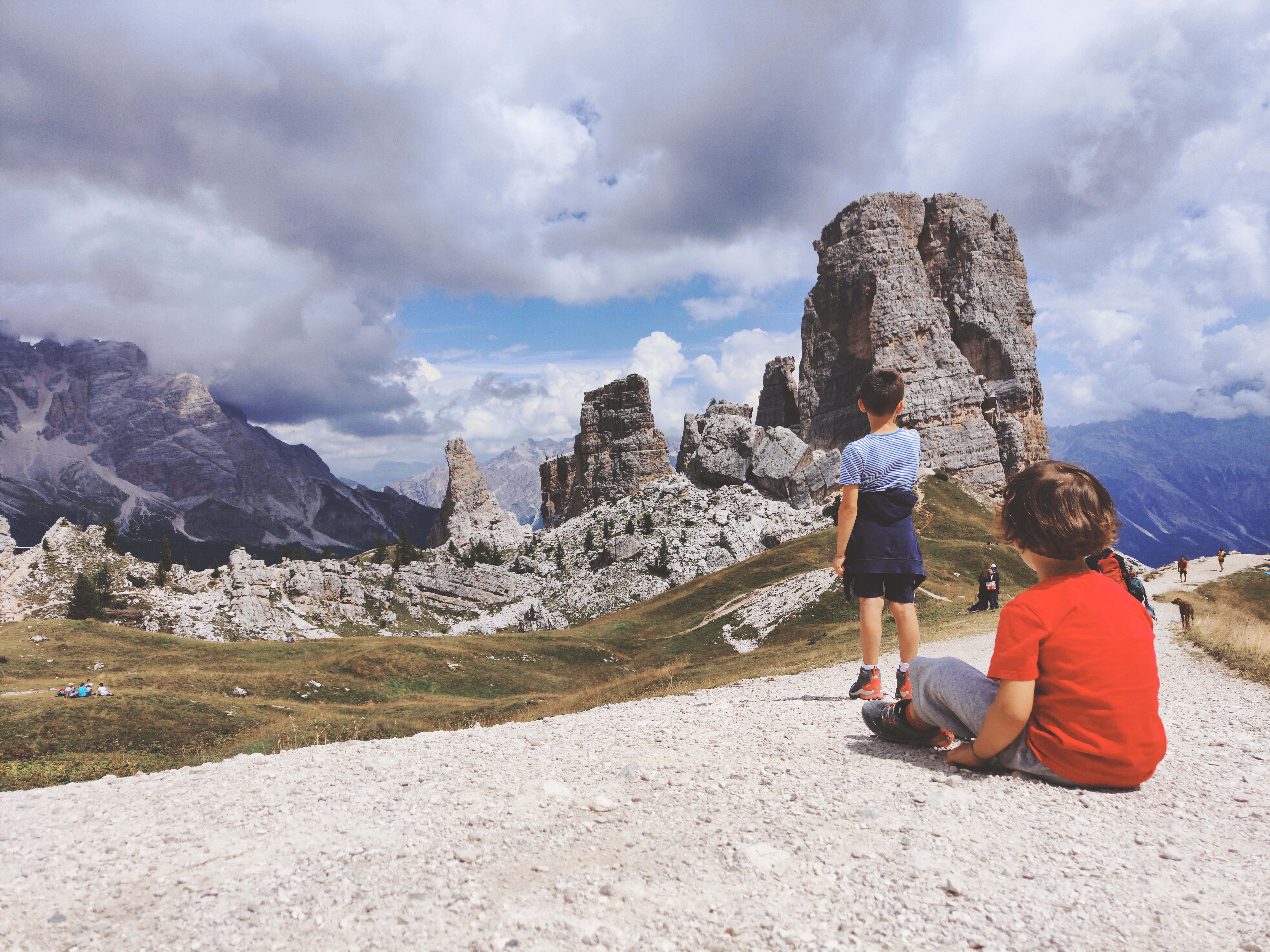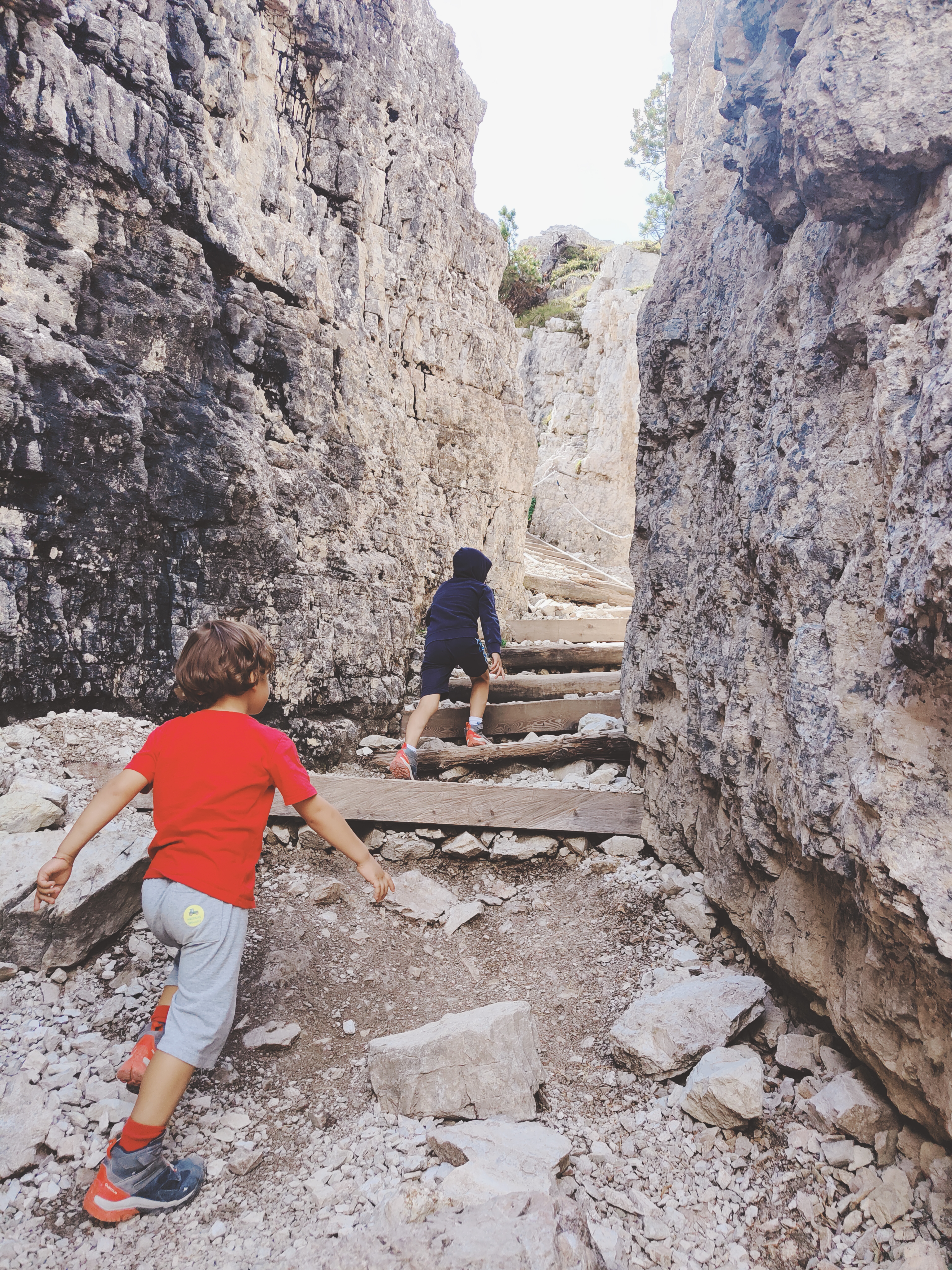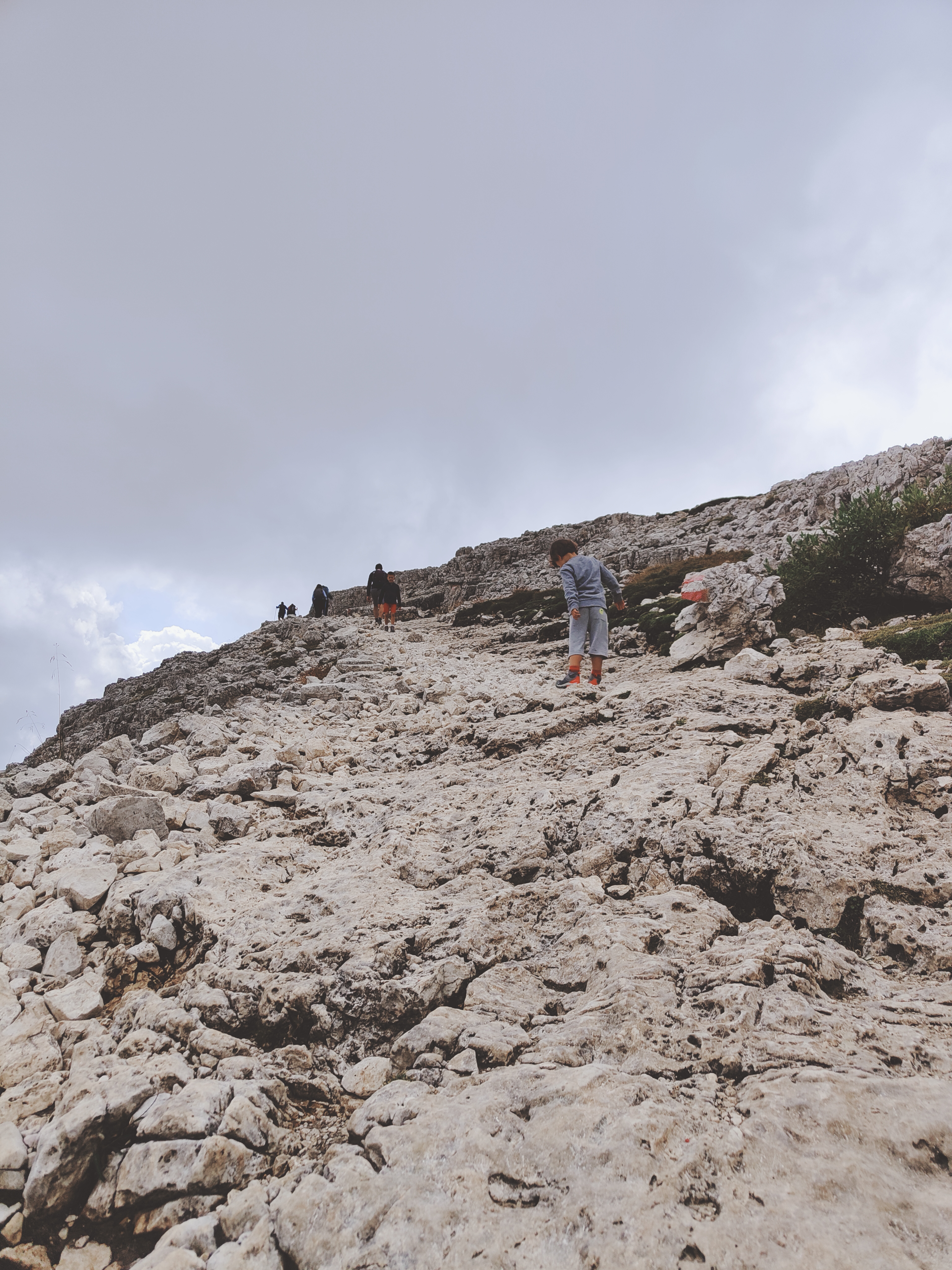 Arrivati, con qualche lamentio del più piccolo, confermo che la discesa è stata più tosta. Ci rilassiamo nella terrazza panoramica del Rifugio Scoiattoli davanti un buon dolce. Mica ci fermiamo qui…un’altra esperienza ci aspetta nel museo a cielo aperto della grande guerra.