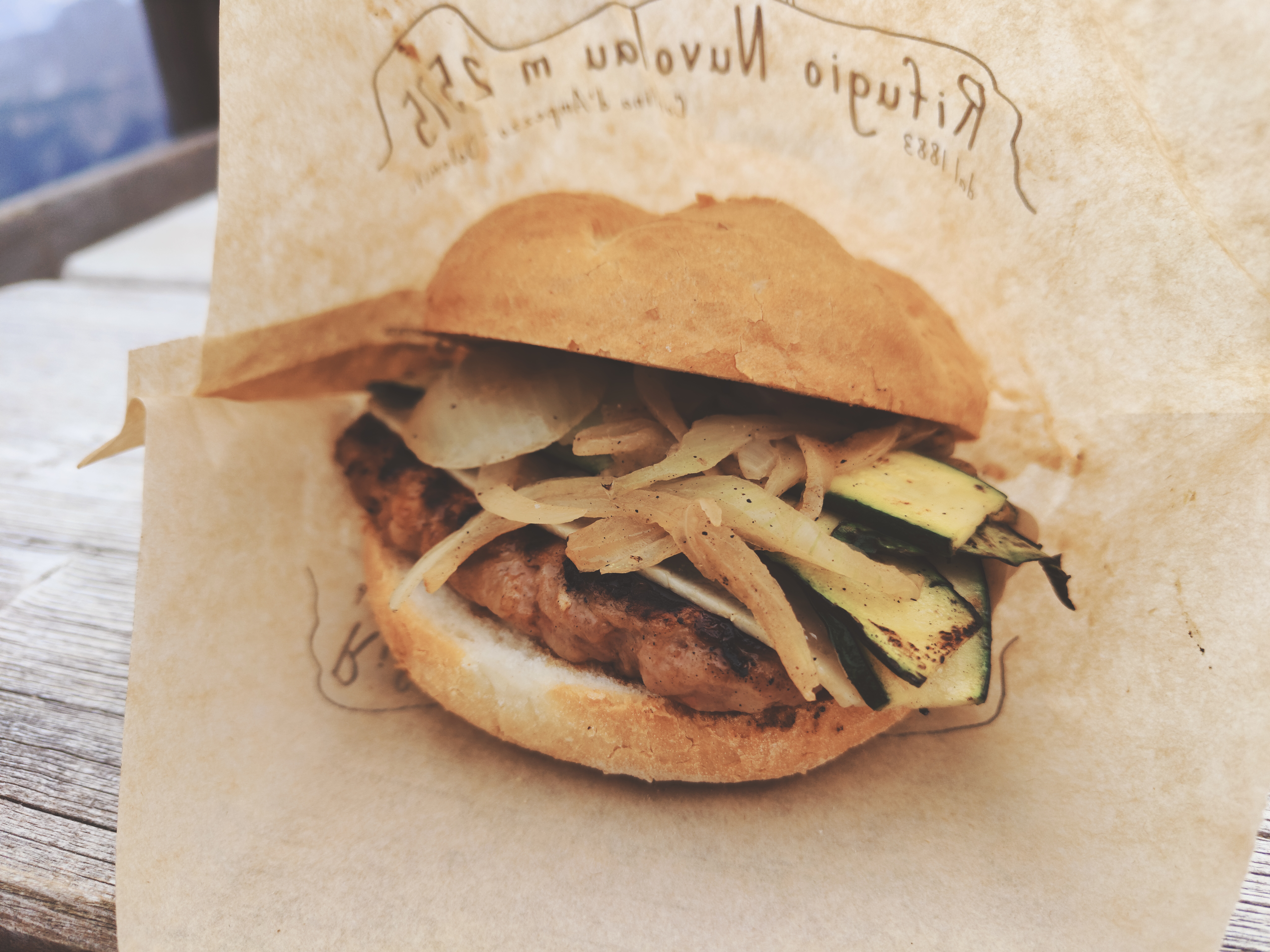 Cucina con vista, un giovane ragazzo grigliava carne ai ferri all’aperto, che profumo e che fame. Troviamo facilmente posto, alle 11.30 avevamo già raggiunto la meta più impegnativa e spettacolare. Un bel gruppo di ragazzi giovani che gestiscono il rifugio con grande entusiasmo e simpatia.