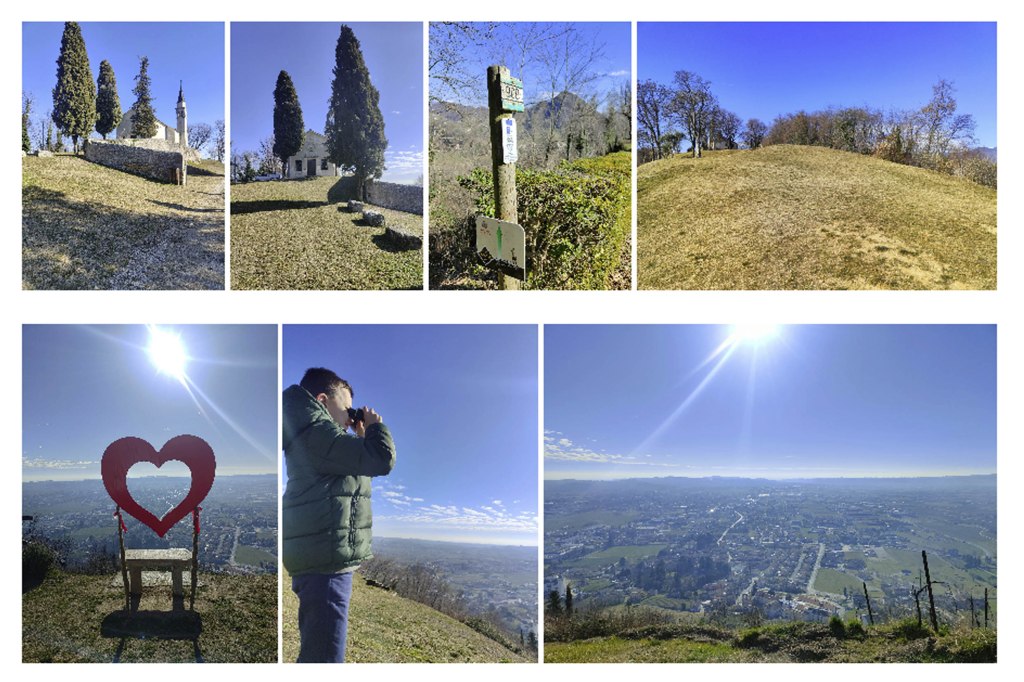 Arriviamo ad un piccolo tornante, nei pressi di Casa Vedovati, troviamo le indicazioni per Collagù e per il Colle di San Gallo, (dove siamo diretti). Qui è presente l’eremo e il monumento all’aviatore. Qui si apre un bellissimo balcone naturale sulla pianura e sulle Prealpi Trevigiane.