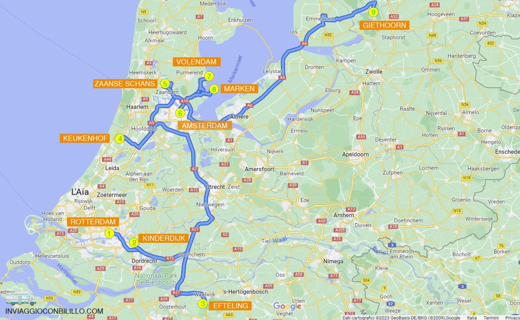 Nei Paesi Bassi, un giro quasi ad anello. Iscritta a vari gruppi su Facebook di tema camperisti, soste libere etc, sembra che ovunque si vada con un camper, ti mettano la croce sopra, commenti dove non saremo mai riusciti a trovare un posto, ci avrebbero mandato via, fatto multe, bussato sul cuore della notte per sloggiare… Ma non è stato per nulla così, anzi.