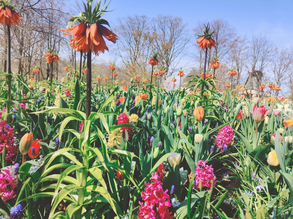 Il momento migliore per assistere alla massima fioritura dei tulipani è circa la metà di aprile, sempre tenendo conto della variabile meteorologica che a queste latitudini ha una varianza piuttosto elevata.