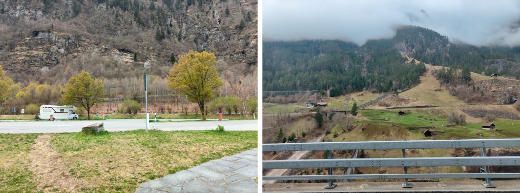 Venti minuti prima della galleria stradale del San Gottardo (lunga 16,942 km) ci fermiamo per pranzo (in camper) all’area di sosta Lavorgo (CRVM+Q5 Chironico, Svizzera). Anche se partiti dalla sera prima, approfittiamo del camper service gratuito, almeno per quel poco che ci serve). In quest’area di sosta ci sono parcheggi, fontanelle di acqua fresca, servizi igienici e area picnic.