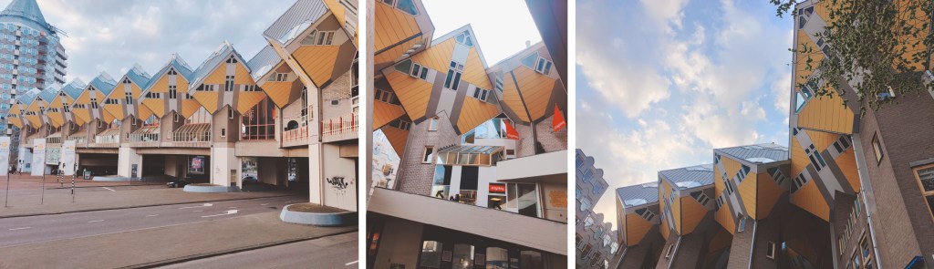 Le cosiddette “case cubiche”, chiamate anche paalwoningen sono state ideate da Piet Blom rappresentando uno dei progetti più originali mai realizzati. Simbolo icona di Rotterdam, le case cubiche sono situate nel quartiere di Blaak: 38 abitazioni inclinate di 45 gradi sorrette da pali che richiamano l’immagine del bosco. Una delle case cubiche ospita il museo-casa Kijk-Kubus che permette al visitatore di scoprire i suoi interni.