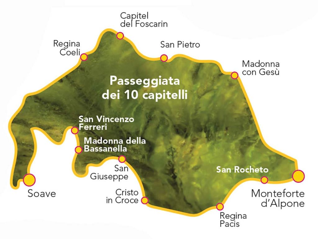 l percorso dei dieci capitelli nei suoi 8 chilometri circa si snoda tra i bei vigneti della zona rurale attorno e sopra Monteforte d’Alpone.