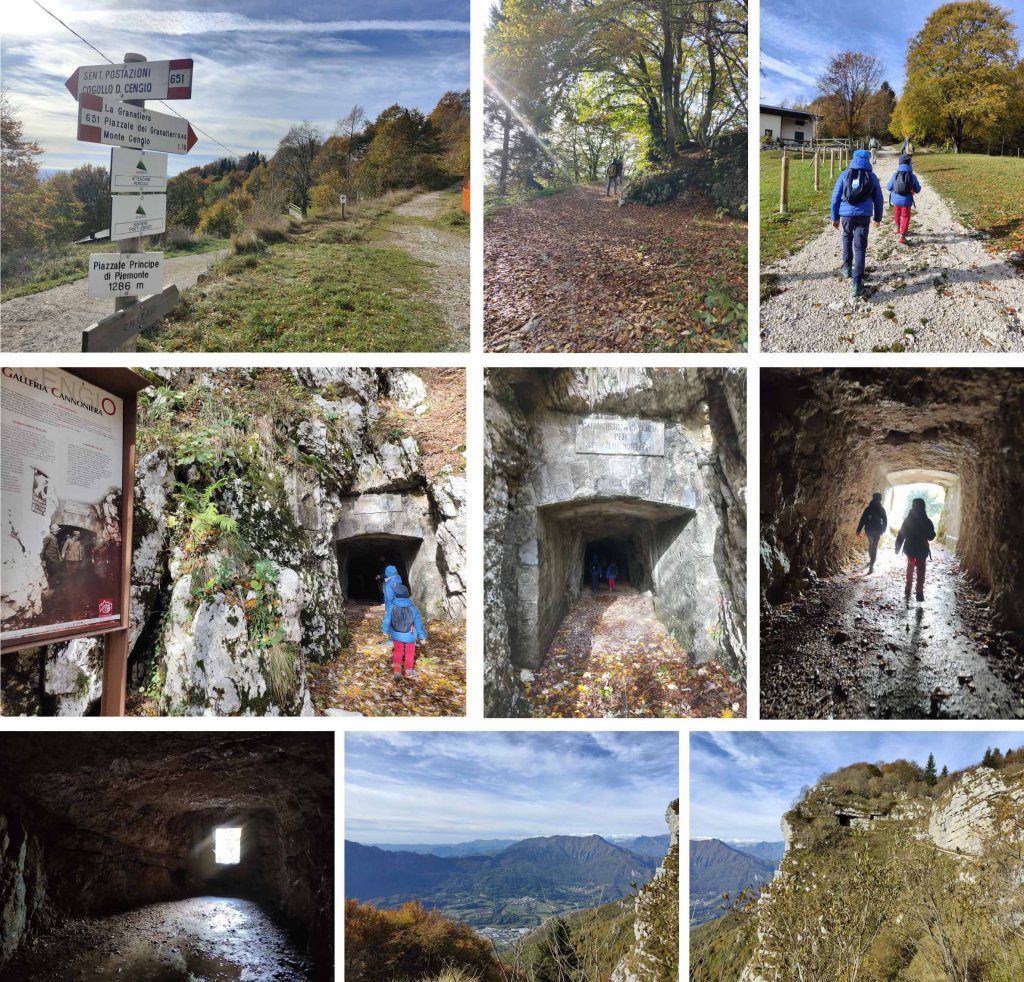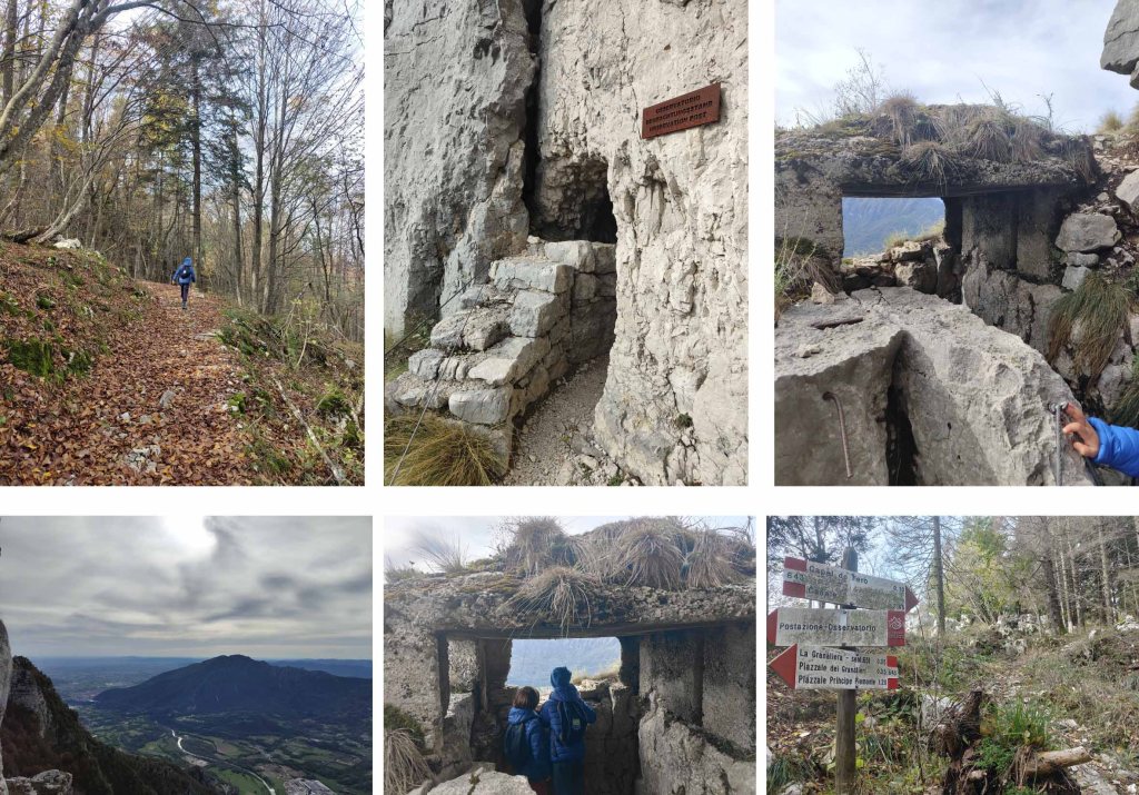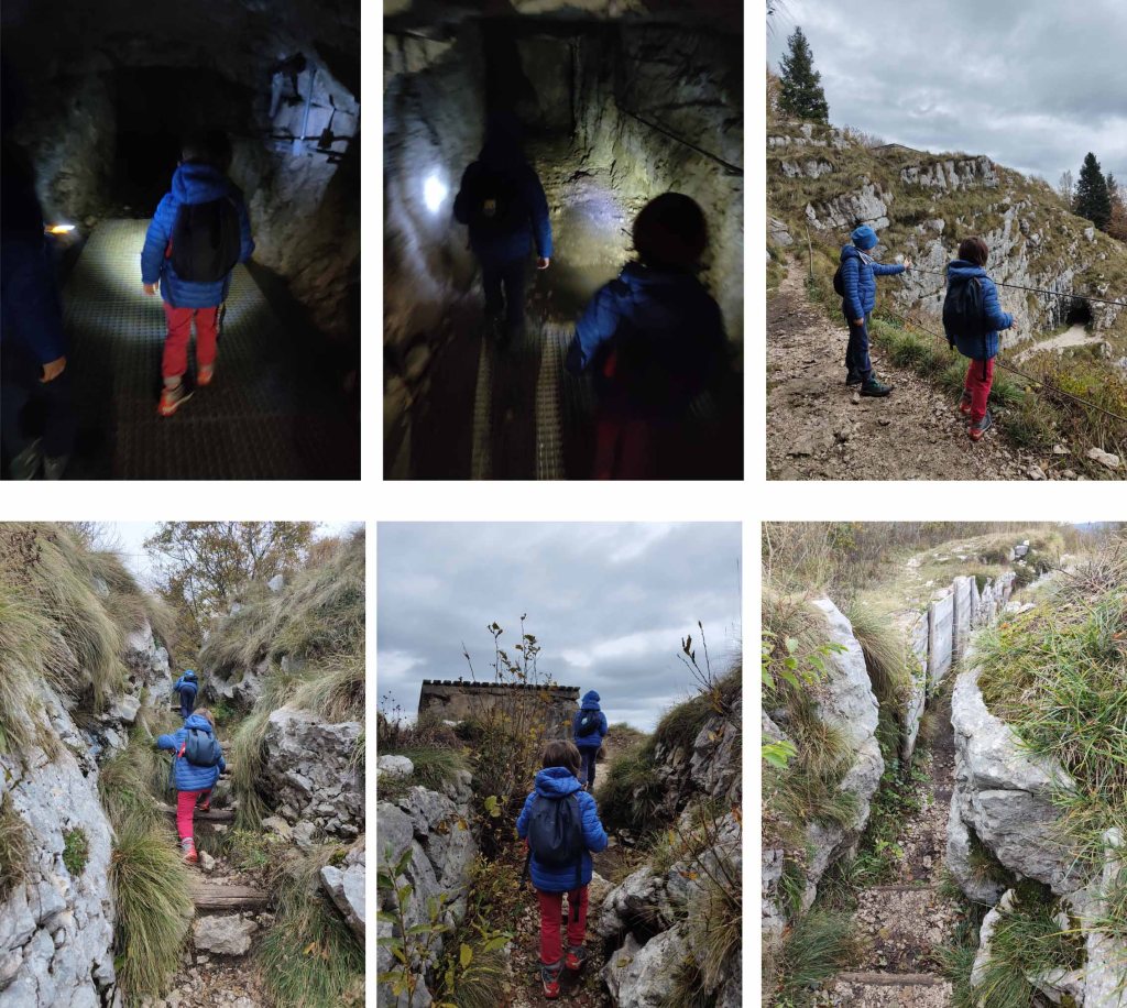 Si passa per le innumerevoli gallerie e appostamenti scavati durante il conflitto. L’escursione non è molto complicata dal punto di vista fisico, l’unica cosa da stare attenti è l’elevata esposizione della mulattiera. Per quest’escursione è necessario essere muniti di torcia in quanto ci sono diverse gallerie molto lunghe e di conseguenza buie.