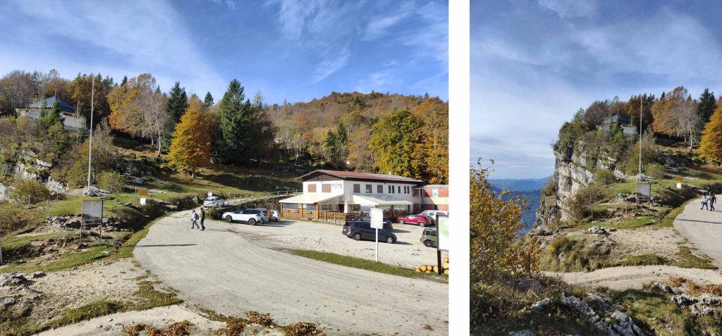 Dopo aver percorso la galleria di Comando, arriviamo al Piazzale dei Granatieri, dove è presente un parcheggio auto (volendo si può parcheggiare anche qui ma il giro non verrebbe ad anello), un rifugio e una chiesa in ricordo a tutti i caduti della Grande Guerra.