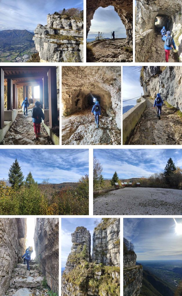 Rimane l’ultimo tratto da fare, quello che sale in cima al Monte Cengio. Fate attenzione: non seguite la strada forestale, ma prendete il sentierino sotto alla chiesa. Da qui, infatti, si snoda il pezzo più bello di tutta l’escursione: una galleria a forma elicoleidale con finestre per l’osservazione e poi un sentiero con tratti esposti che sale fino al Piazzale Pennella dove si apre un bellissimo panorama sull’Altopiano di Asiago.