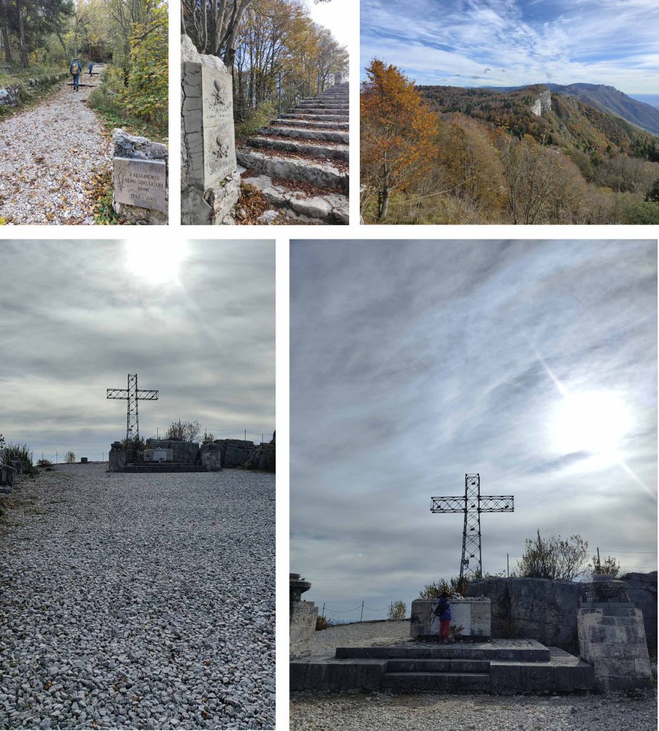 Ancora in salita e raggiungiamo in pochi minuti la cima del Monte Cengio, dal 1967 dichiarata Zona Sacra, a ricordo dei circa 10.000 soldati che persero la vita su questo fronte.