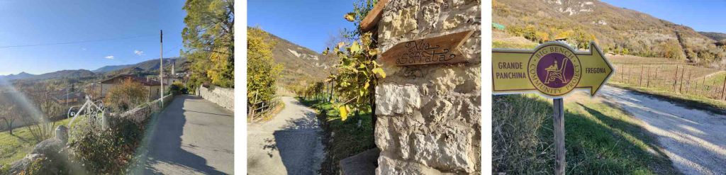 Potete partire da Via Carnielutti, Osigo, come abbiamo fatto noi, oppure da Borgo Luca. Come arriverete in zona troverete indicazioni per la panchina, il sentiero si snoda tra vigneti e all’interno di un bosco, in autunno è una meraviglia. La salita non manca, un pò impegnativa in alcuni punti ma non impossibile. Il panorama non manca, ne vale la pena.