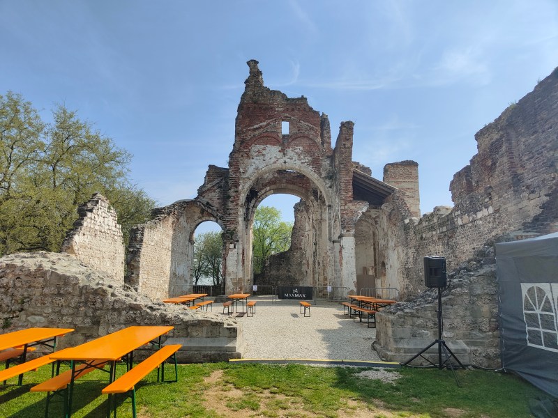 Sono le 11.30 e mentre raggiungiamo in salita l’Abbazia un odore di griglia ci avvolge. Churrasco, musica con radio Piterpan, area intrattenimento per bambini e bar aperti. Non da programma ma ci fermiamo qui a pranzo.