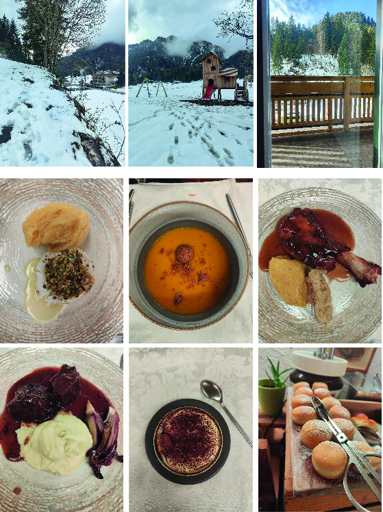 Il ristorante, aperto tutto l’anno sia agli ospiti del rifugio che ad esterni, è un piccolo gioiello dove poter gustare i piatti tipici trentini cucinati come una volta. La colazione è ricca e sana con buffet di dolci, pane e marmellate fatte in casa, e una parte salata. Le materie prime di altissima qualità sono tutte locali e per la maggior parte provenienti dall’Azienda Agricola di famiglia, situata ad appena 1 Km di distanza dal rifugio.