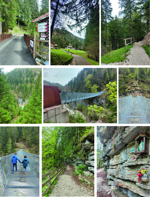 Dopo un sali e scendi, ci aspetta una discesa un pò ripida a zig zag. In circa 20 minuti raggiungiamo il maestoso e un pò impressionante ponte. I bimbi non hanno timore, e da subito iniziamo la nostra attraversata, ci soffermiamo al centro per goderci il panorama e proseguiamo fino alla fine per poi far ritorno all’auto.