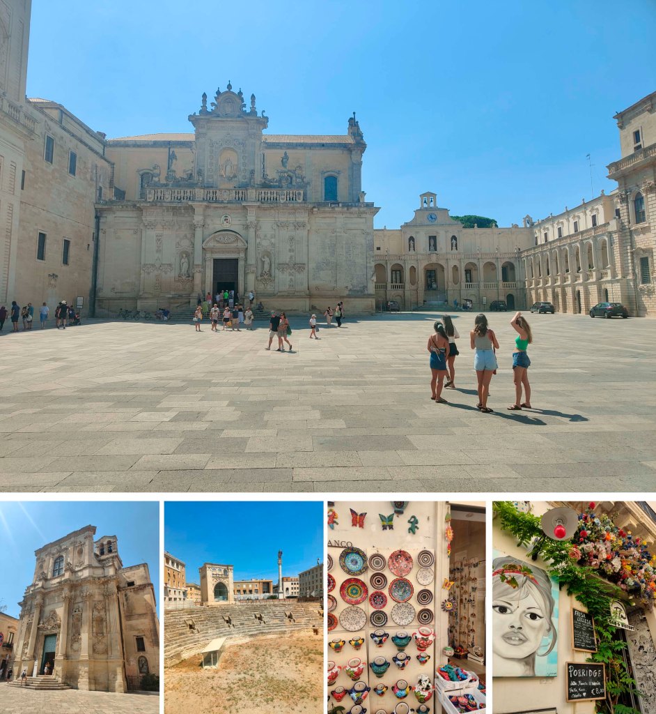 Oggi lasciamo il Piccolo Trullo, scendiamo ancora di qualche ora, prima di raggiungere la seconda struttura, facciamo tappa a Lecce, una città situata nel cuore del Salento, grazie alla sua storia e agli splendidi edifici realizzati utilizzando la famosa pietra leccese. Conosciuta come la “capitale del barocco”, la città vanta un patrimonio architettonico, storico e naturale davvero unico.
