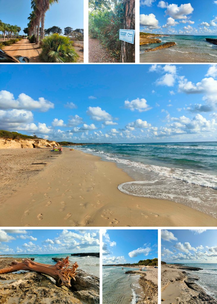 Anche oggi visitiamo un’altra spiaggia molto nominata, affacciata sul Mar Ionio Spiaggia Punta Prosciutto. Un’oretta circa di auto dal nostro apparamento a Marina di Mancaversa. Arrivati presto di parcheggi liberi c’è l’imbarazzo della scelta. Lasciamo l’auto vicino ad un punto di accesso. Spiaggia molto bella, merita davvero. Poi dipende molto dal meteo, ho letto recensioni dove le persone di lamentavano dell’acqua sporca etc. Capita.