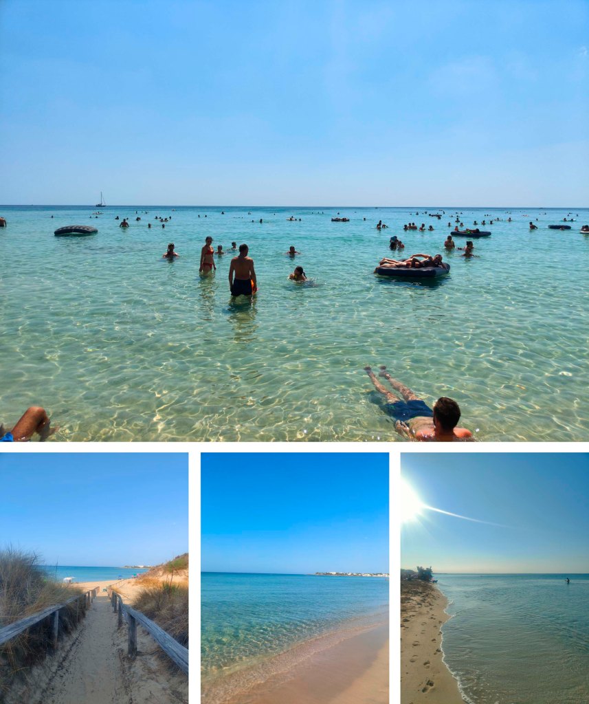“Ultimo” giorno di mare, ritorniamo a Torre Mozza, parcheggio gratuito, spiaggia e acqua top senza troppa gente. Ci siamo stati anche il primo giorno e devo dire che in entrambe le giornate la spiaggia per tutto il giorno era vivibile, ognuno aveva i suoi spazi.
