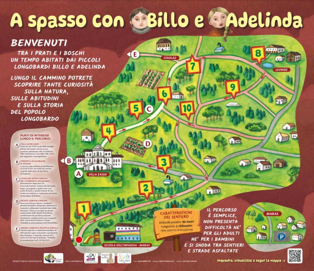 Sabato 5 aprile 2025 c’è stata l’inaugurazione di un nuovo sentiero tematico Billo ed Adelinda a Sospirolo, in loc. Maras, un sentiero tematico longobardo (lungo 2 km tra bosco ed asfalto). Il tema è stato scelto perché lungo il sentiero negli anni 50 sono state rinvenute delle sepolture longobarde, tra le quali una di un guerriero.