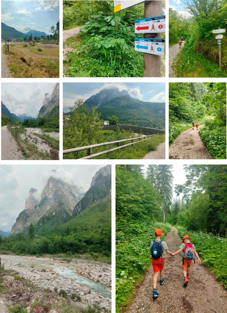 Il percorso inizia comodamente nell’area sosta camper di Agordo, lasciamo l’auto qui e seguiamo da subito le chiare indicazioni esposte sui cartelli già evidenti nel parcheggio, che ci porta ad addentraci nei boschi e nei prati circostanti. Un’area dotata di c/s x camper, parco giochi e spazi ampi per riposare.
