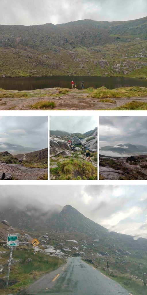 Da Adare abbiamo proseguito verso la penisola di Dingle, puntando al famoso Conor Pass, il passo montano più spettacolare e panoramico d’Irlanda. Distanza Adare → Conor Pass (laghetto vicino): circa 155 km, 2 ore e 30 minuti. Si percorrono tratti veloci fino a Tralee, per poi entrare nella penisola di Dingle, dove la strada si fa sempre più stretta e tortuosa, arrampicandosi tra montagne e vallate verde intenso.