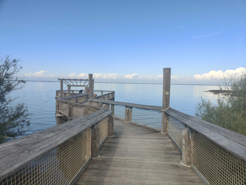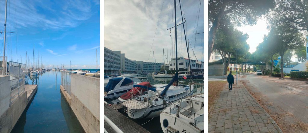 Si continua poi lungo la laguna, passando vicino alla Marina Punta Faro, tra barche ormeggiate e riflessi sull’acqua.